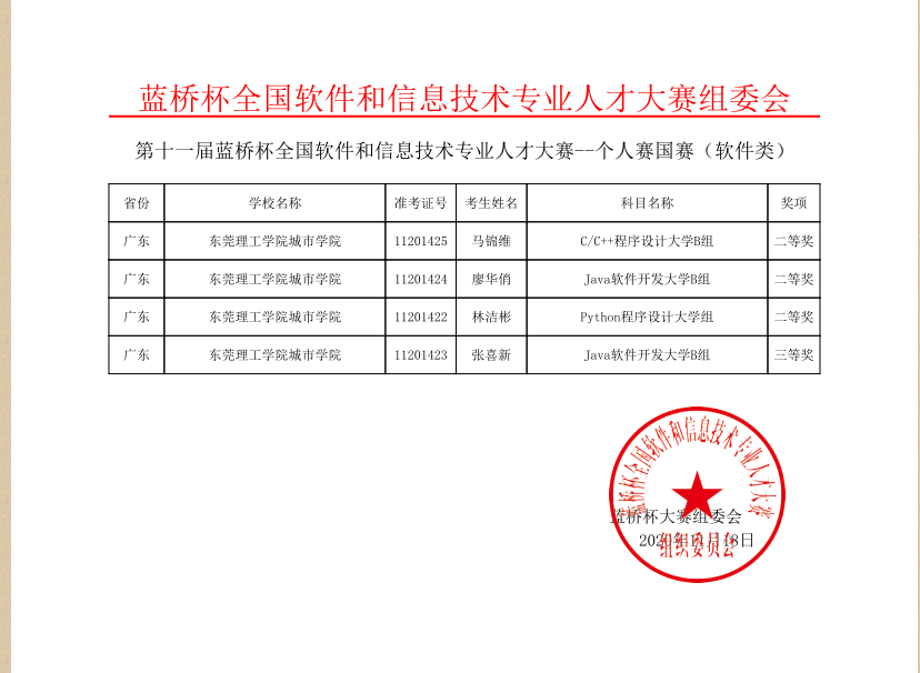 近日传来喜报,由工业和信息化部人才交流中心主办的第十一届蓝桥杯全国软件和信息技术专业人才大赛个人赛省赛圆满结束。Beat365计算机与信息学院“双带头人”,教师党支部书记陈强以及该学院杨胜利、彭义春三位老师指导的学生在国赛上取得了二等奖3个,三等奖1个的好成绩。