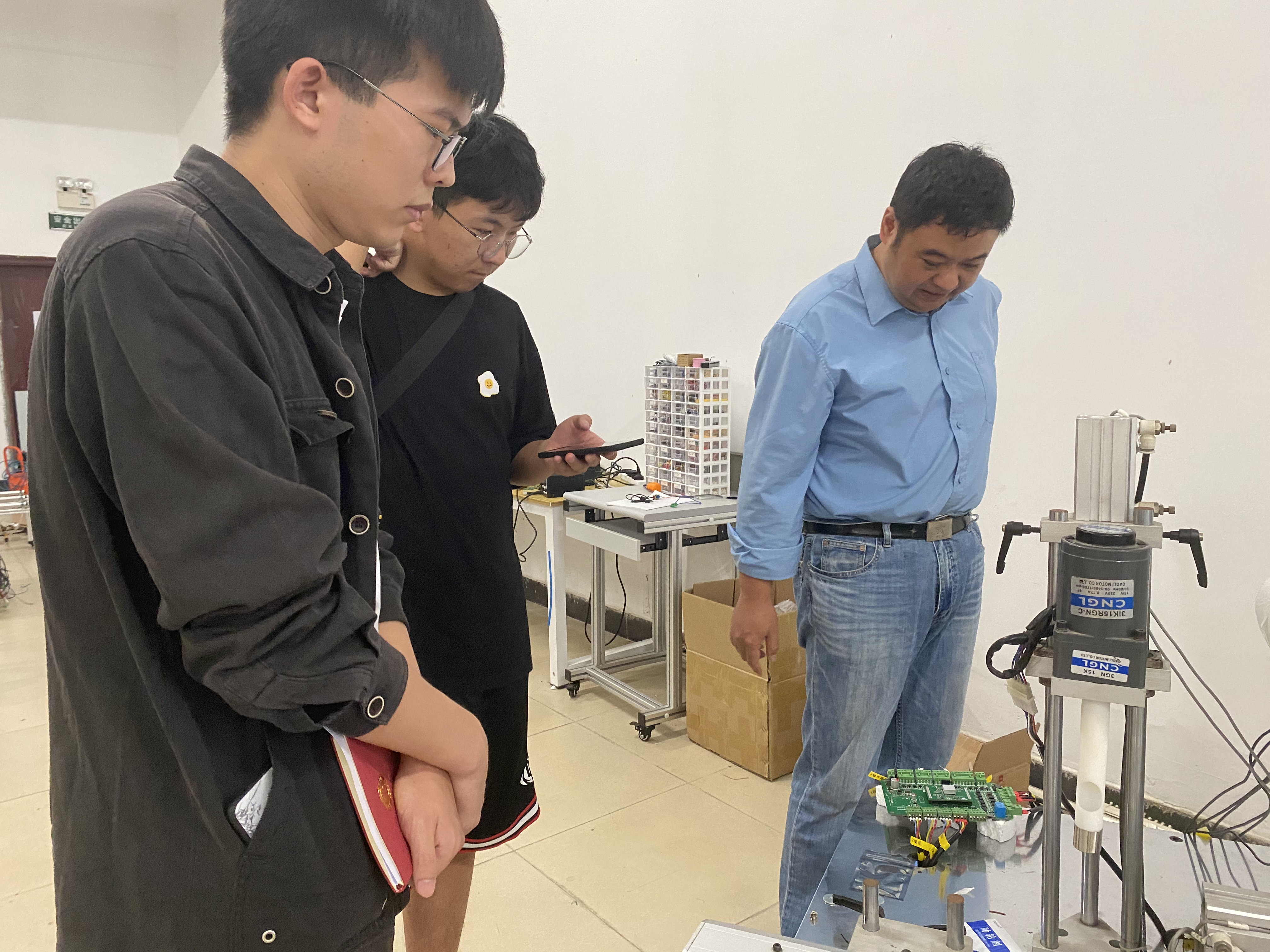 进入智能制造学院的创新中心实验室,映入眼帘的是黑板上密密麻麻、井然有序的字迹——这是张攀峰精心为学生准备的制作项目。当谈及研发柑橘去芯除果肉机内夹具制作方法这个项目的初衷时,他表明,是因为市场有强烈的需求。张攀峰对项目的可行性表示大力地肯定,他认为柑橘去芯除果肉机内夹具制作方法与市场需求契合,并且具有一定的创新性,其中最重要的是符合我国在智能制造领域的需要。