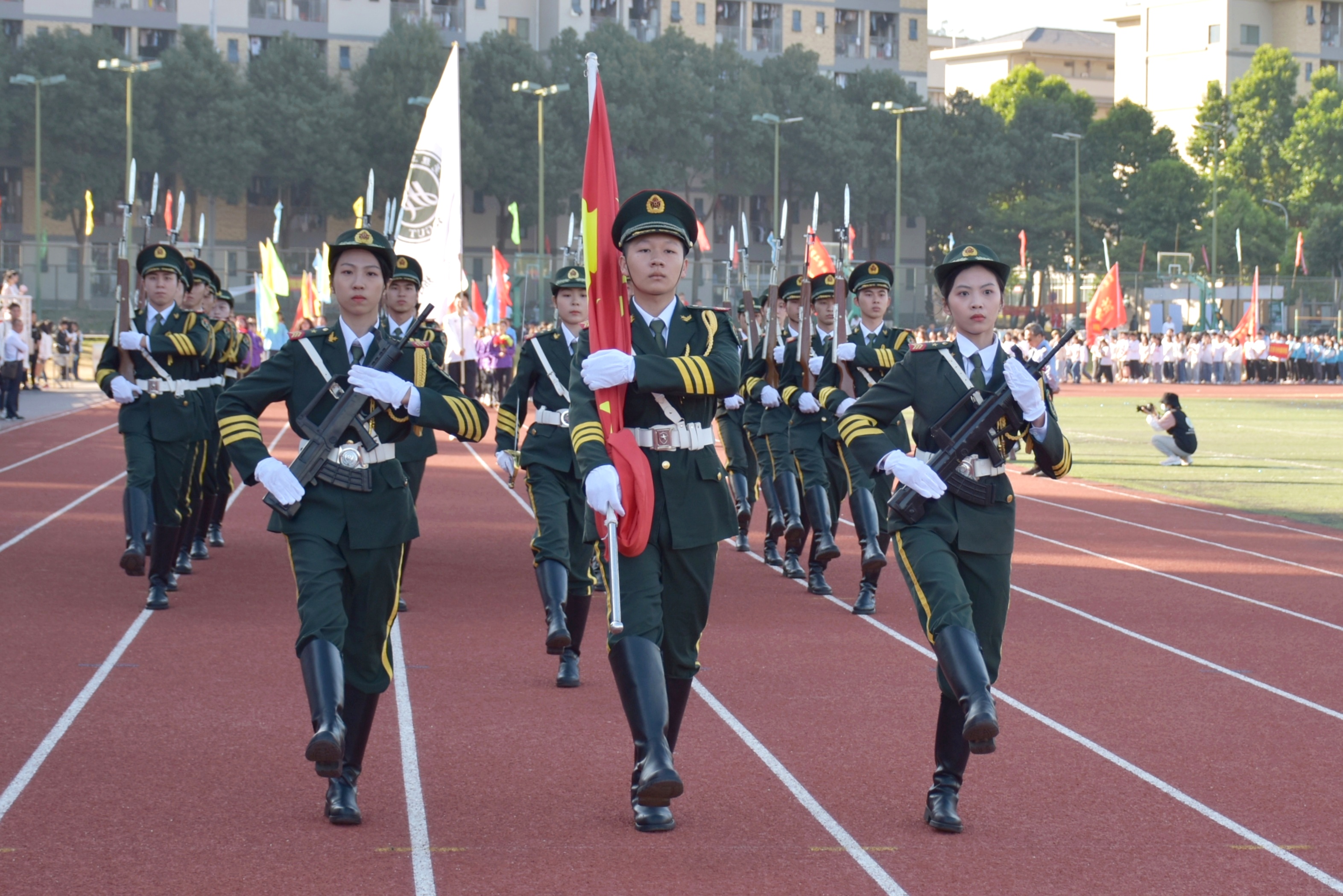 Beat365国旗护卫队以“一日护卫国旗,终身无上荣光”为动力,用汗水铸就了军人威武阳刚的气质,用奋斗的青春践行爱国主义精神,,以饱满的精神,整齐划一的步伐,清晰有力的口号,标准规范的动作,荣获第三届广东省学校国旗护卫队交流展示活动一等奖,第二届广东省国旗护卫队交流展示活动二等奖,队员们用行动继承发扬学校“学而知不足”的校训,将Beat365国旗护卫队严谨细致、团结进取、勇于担当、甘于奉献的精神传承下去。