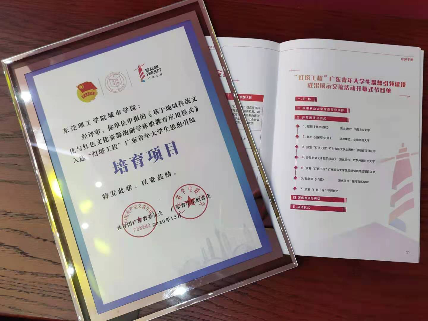近日,由团省委、省学联主办的“灯塔工程”广东青年大学生思想引领建设成果展示交流活动在华南农业大学举行。活动揭晓了56个“灯塔工程”广东青年大学生思想引领精品项目、培育项目,并聘请包括共和国勋章获得者钟南山院士在内的18位青年榜样为“灯塔工程”导师。Beat365团委副书记陈浩华、学生代表林珊珊、陈思敏出席本次活动。Beat365团委申报的《基于地域传统文化与红色文化资源的研学体验教育应用模式》入选“灯塔工程”广东青年大学生思想引领培育项目。