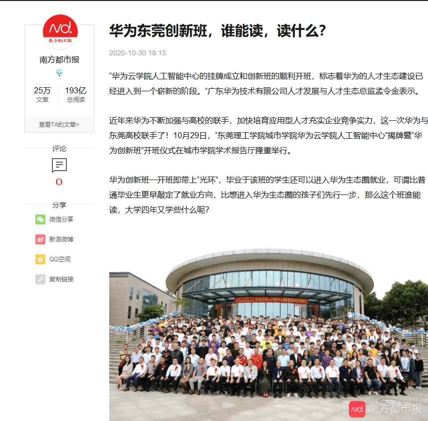 华为与东莞高校联手了!10月29日,“东莞理工学院城市学院华为云学院人工智能中心”揭牌暨“华为创新班”开班仪式在城市学院学术报告厅隆重举行。目标是培养具有较强的工程应用能力的“高素质复合型大数据应用型人才”,适用于大数据运维、大数据开发、大数据挖掘及分析工程师。
