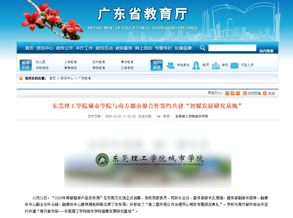 刊发媒体:中国网、广东教育厅官网、《广州日报》、《南方都市报》《东莞日报》,东莞阳光网