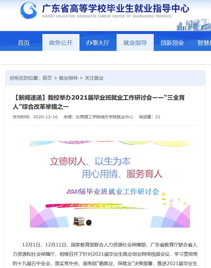 刊载媒体:广东省高等学校毕业生就业指导中心官网