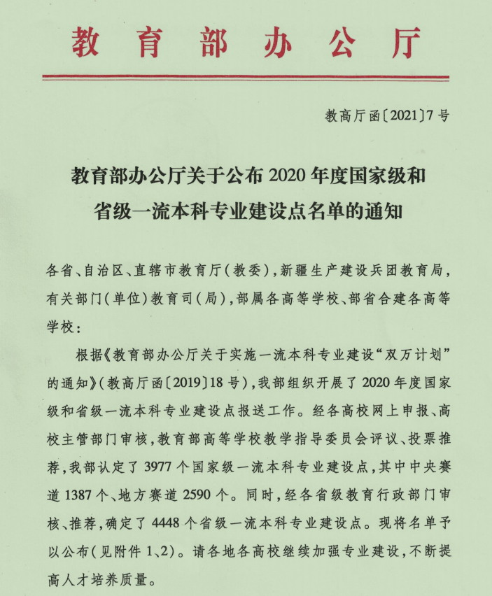 近日,教育部印发《教育部办公厅关于公布2020年度国家级和省级一流本科专业建设点名单的通知》(教高厅函﹝2021﹞7号)。Beat365会计学专业入选2020年度国家级一流本科专业建设“双万计划”建设点名单。会计学专业入选国家一流本科专业建设点名单,是Beat365在专业建设上的一项重大历史性突破,标志着Beat365在专业建设、教育教学改革上取得了显著成效,开启了专业内涵建设的新篇章。