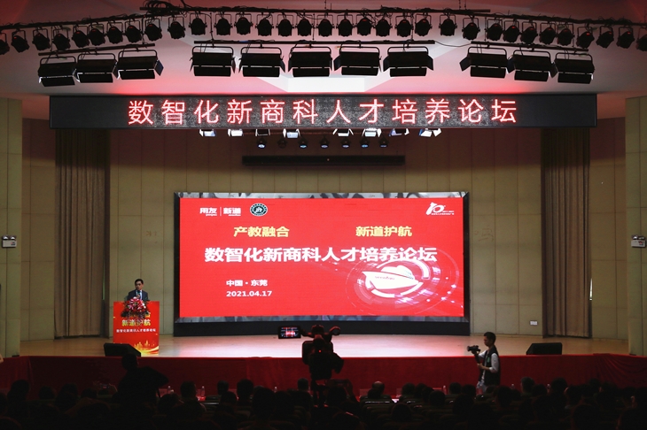 2021年4月17日,由东莞理工学院城市学院、新道科技股份有限公司、用友网络科技股份有限公司联合主办的“数智化新商科人才培养高峰论坛”在东莞理工学院城市学院隆重举行。教育部会计教指委副主任委员、中央财经大学袁淳教授,教育部金融教指委委员、职业教育财经商贸类专业目录研制组组长杨宜教授,教育部会计教指委委员、中山大学谭劲松教授等来自全国86所高校300多名专家学者和教师齐聚一堂,共商数字化和智能化时代新商科人才的培养。