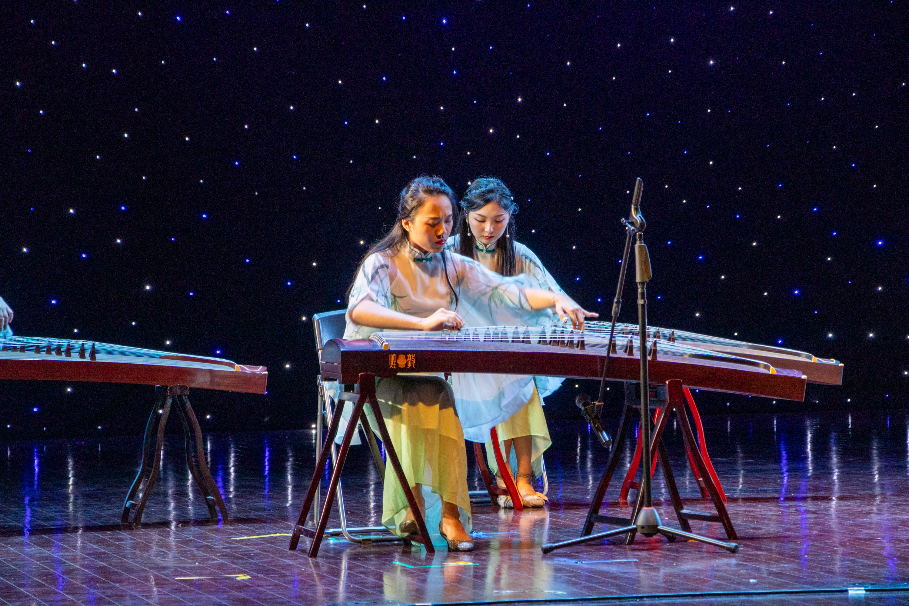 首先由艺术学院金家玉老师和6名学生带来的古筝合奏《战台风》气势磅礴,音乐形象鲜明,时而紧张激烈,时而优美抒情,“大弦嘈嘈如急雨,小弦切切如私语”。听众们仿佛看到码头工人英勇奋战台风的英雄形象。
