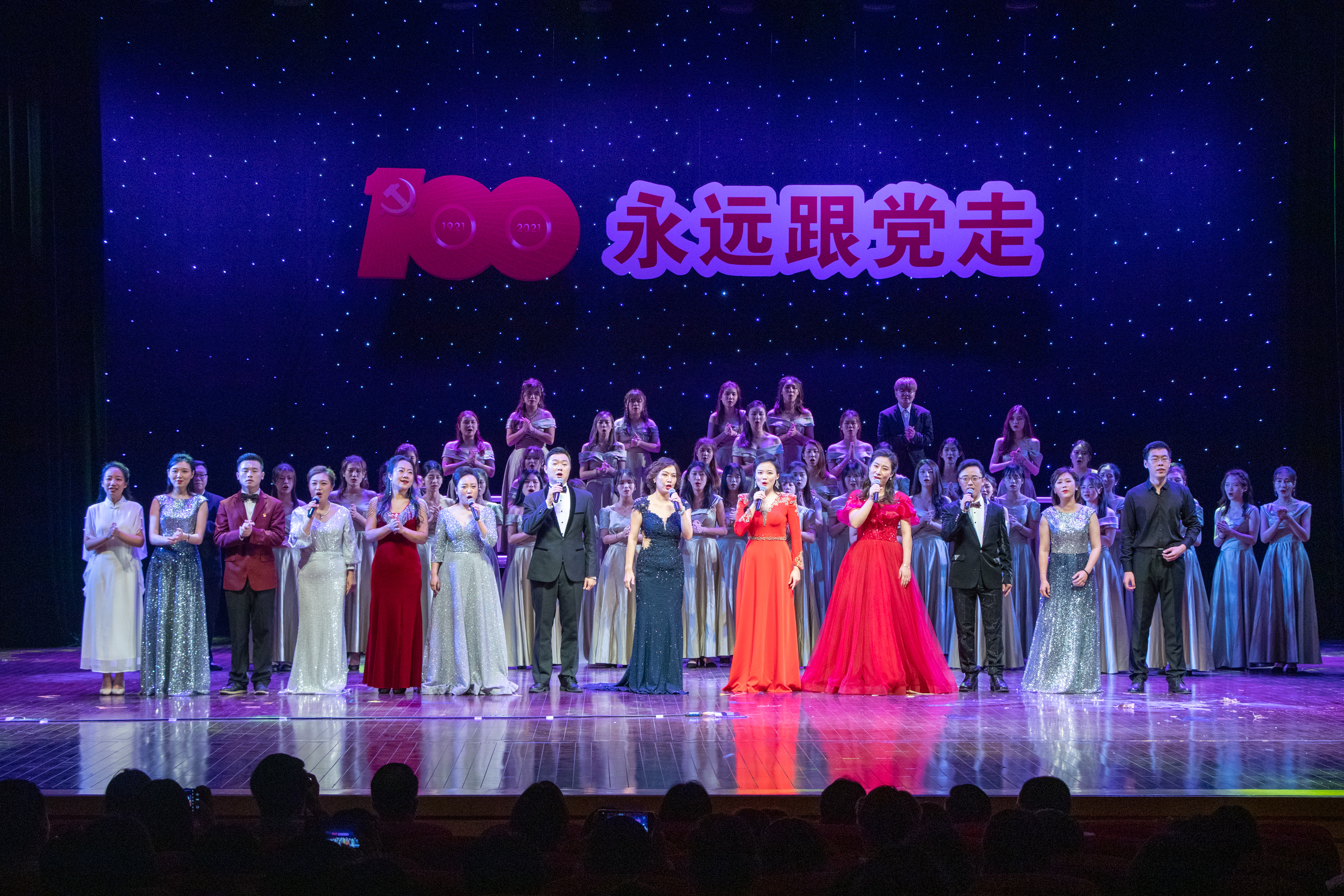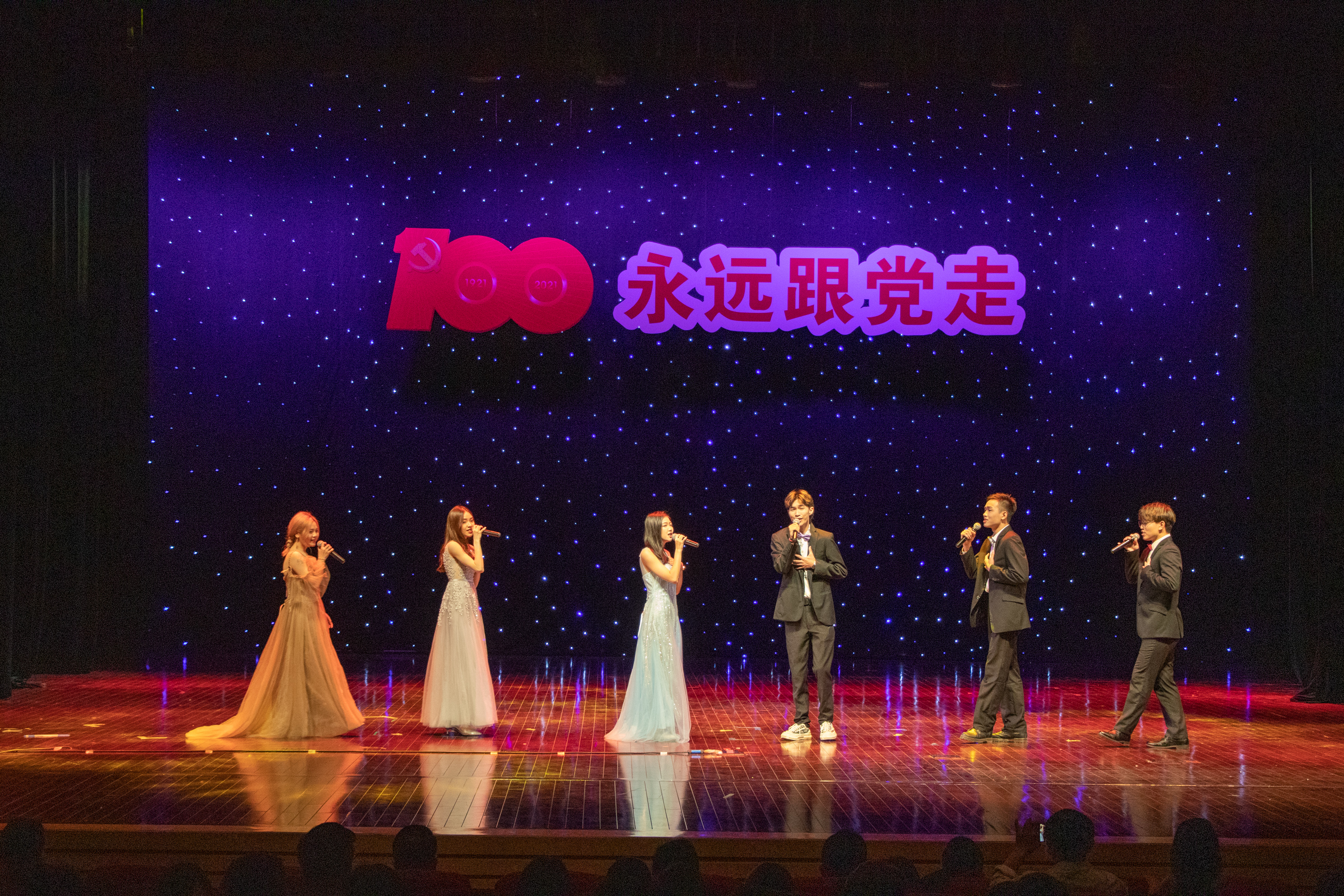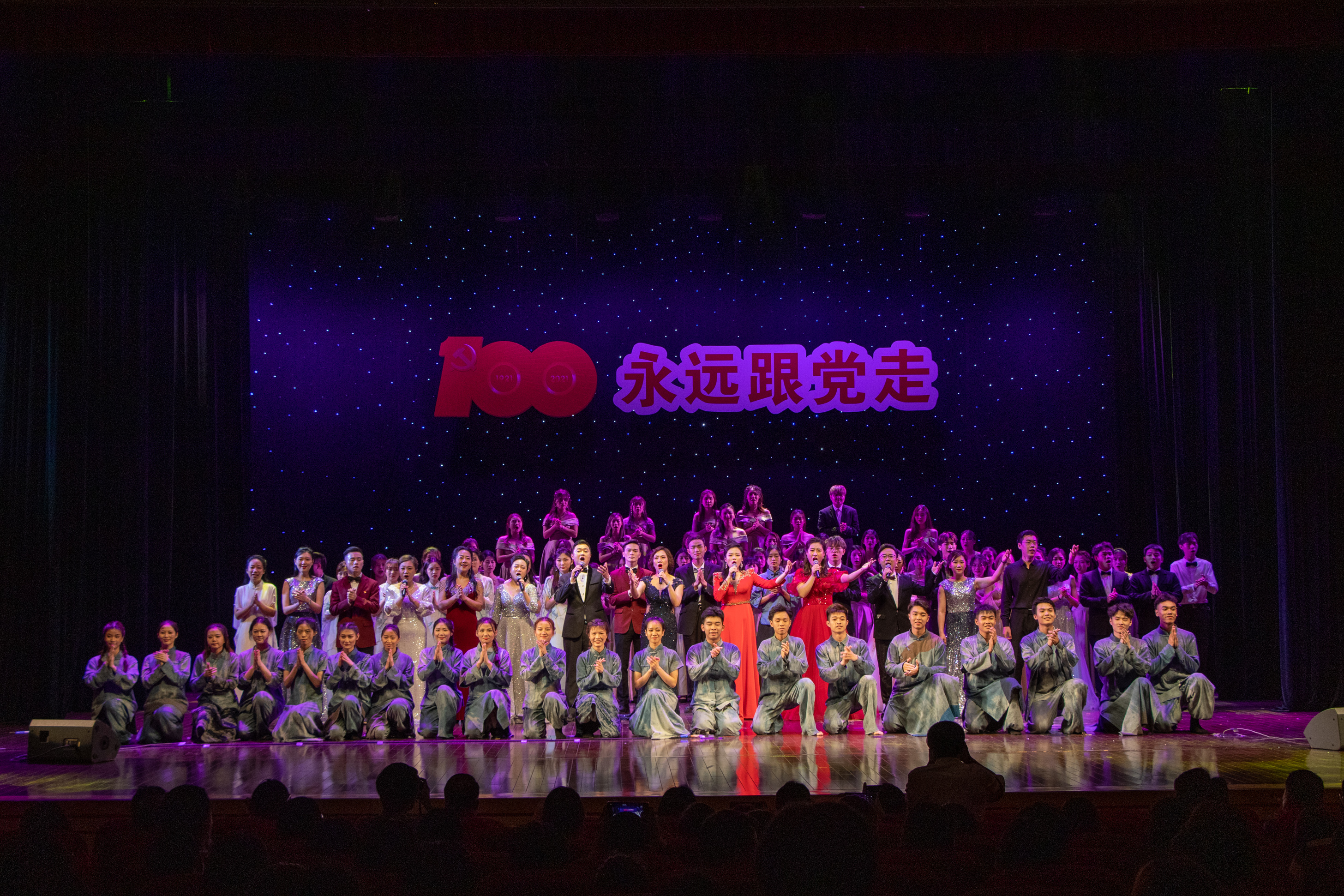 4月29日晚,为庆祝中国共产党成立100周年,响应党中央“为群众办实事”的号召,贯彻高校立德树人的任务,弘扬德艺双馨的精神。由东莞理工学院城市学院艺术学院、东莞市东城文化服务中心、东城文学艺术界联合会联合主办,东莞市文化馆东城分馆承办的“永远跟党走——建党百年专场晚会”,在东城影剧院精彩上演。东莞南城文化中心副主任、市音乐家协会副主席袁焕华、东城文化服务中心副任黄惠伶、万江卫生健康局局长何锦明、市音乐家协会副主席、贝达集团董事长刘友中。东莞理工学院相关领导,学校党委副书记、副校长黄兢,副校长周庆、刘玉侠等领导观看了演出。