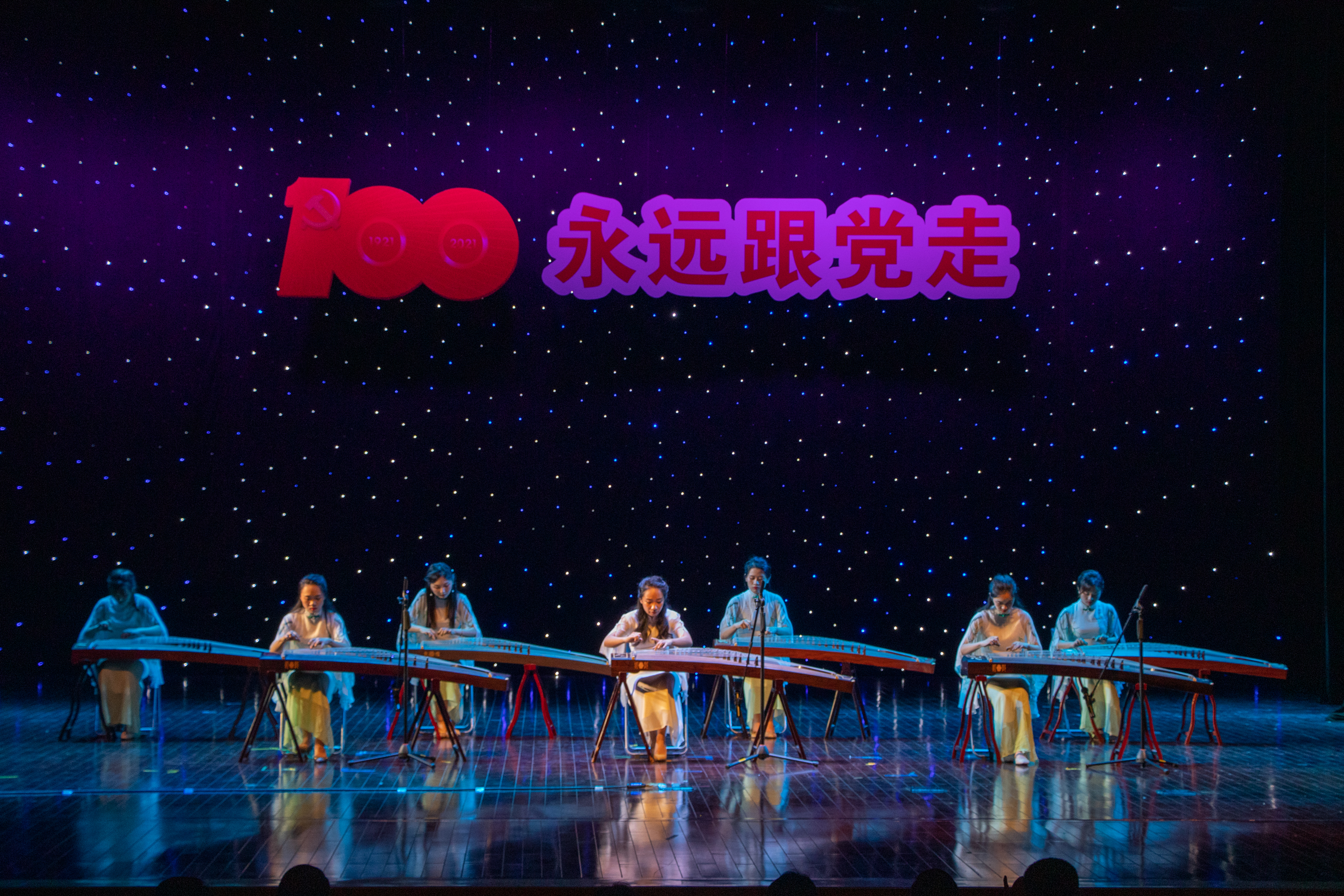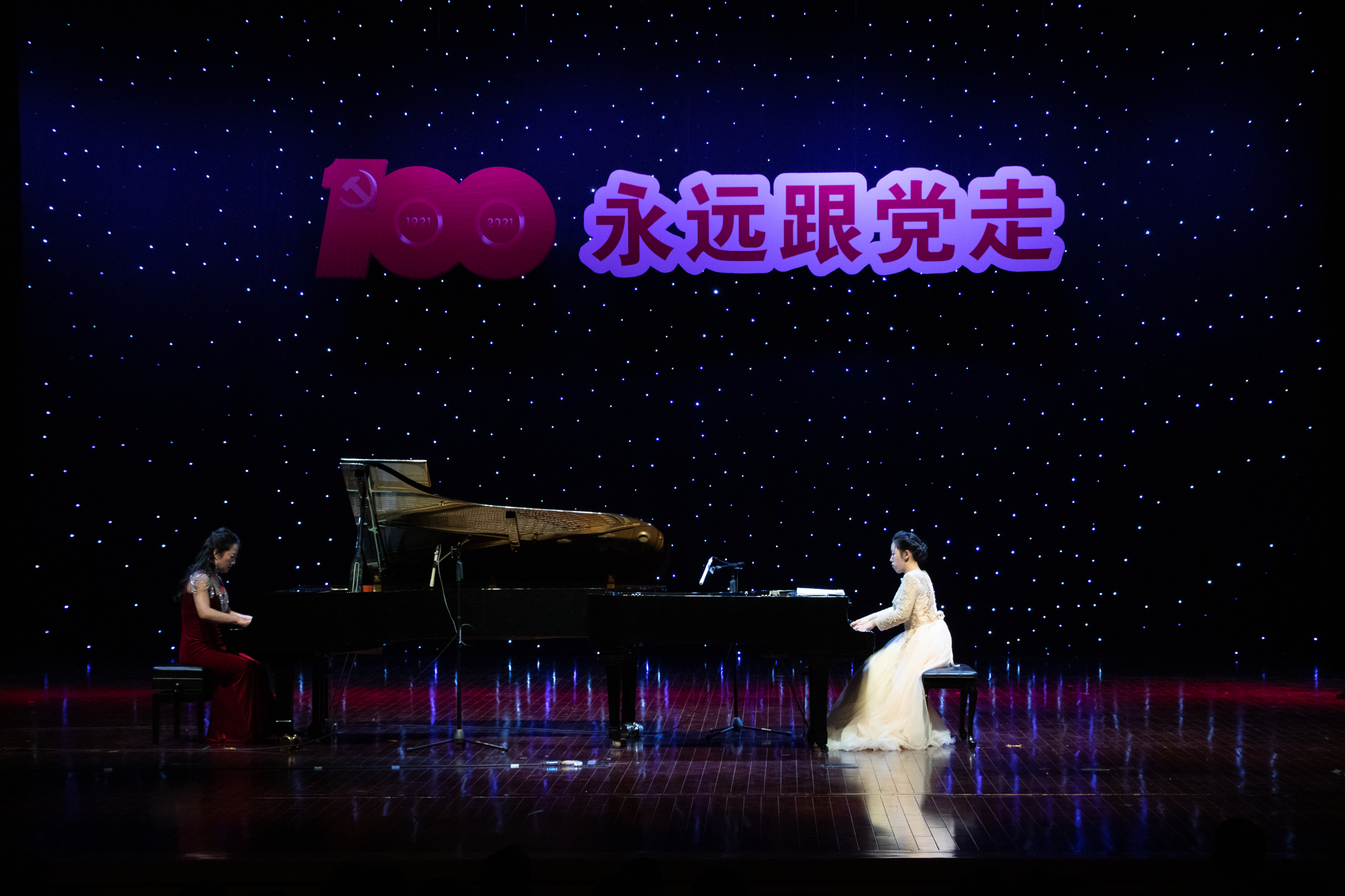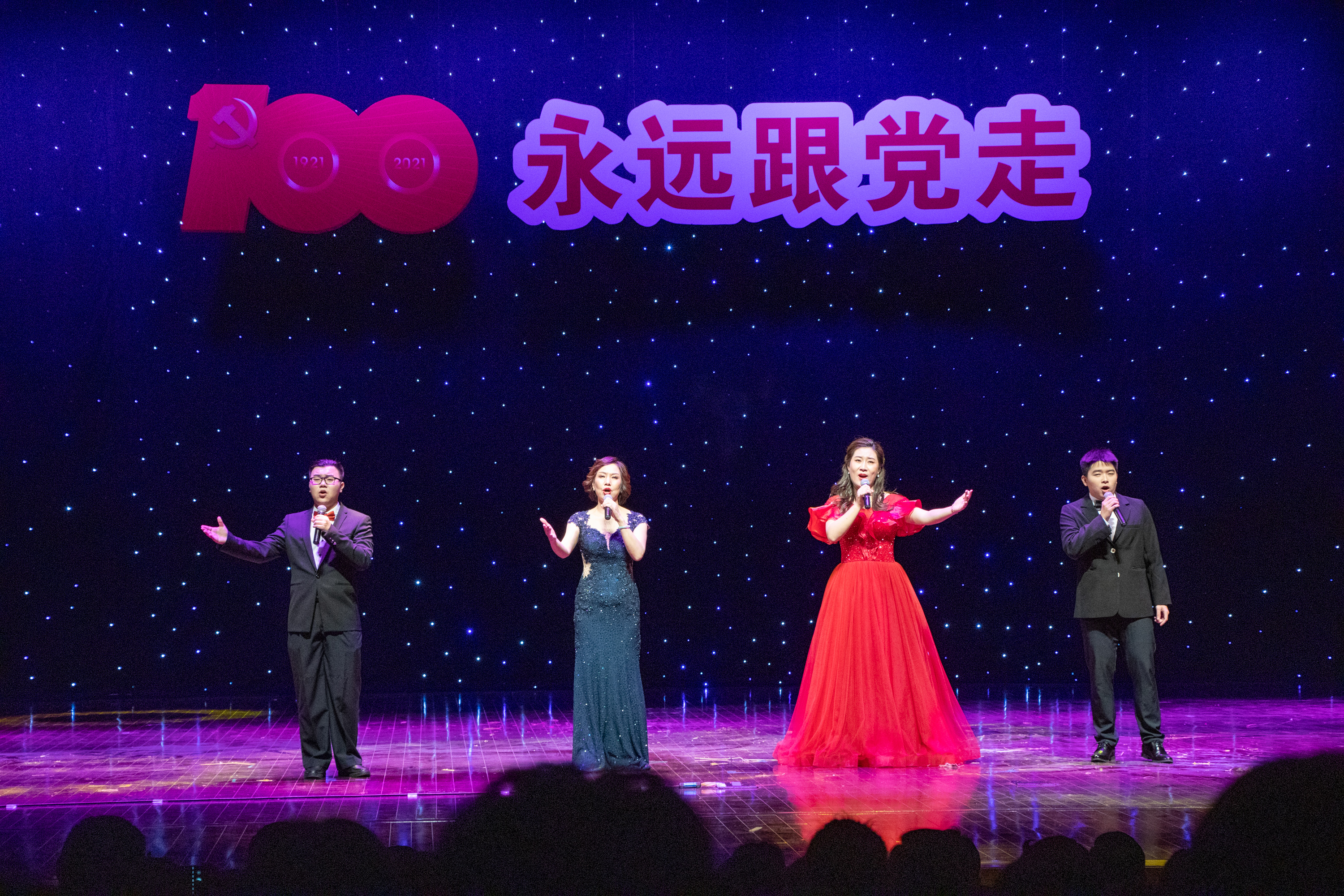 4月29日晚,为庆祝中国共产党成立100周年,响应党中央“为群众办实事”的号召,贯彻高校立德树人的任务,弘扬德艺双馨的精神。由东莞理工学院城市学院艺术学院、东莞市东城文化服务中心、东城文学艺术界联合会联合主办,东莞市文化馆东城分馆承办的“永远跟党走——建党百年专场晚会”,在东城影剧院精彩上演。东莞南城文化中心副主任、市音乐家协会副主席袁焕华、东城文化服务中心副任黄惠伶、万江卫生健康局局长何锦明、市音乐家协会副主席、贝达集团董事长刘友中。东莞理工学院相关领导,学校党委副书记、副校长黄兢,副校长周庆、刘玉侠等领导观看了演出。