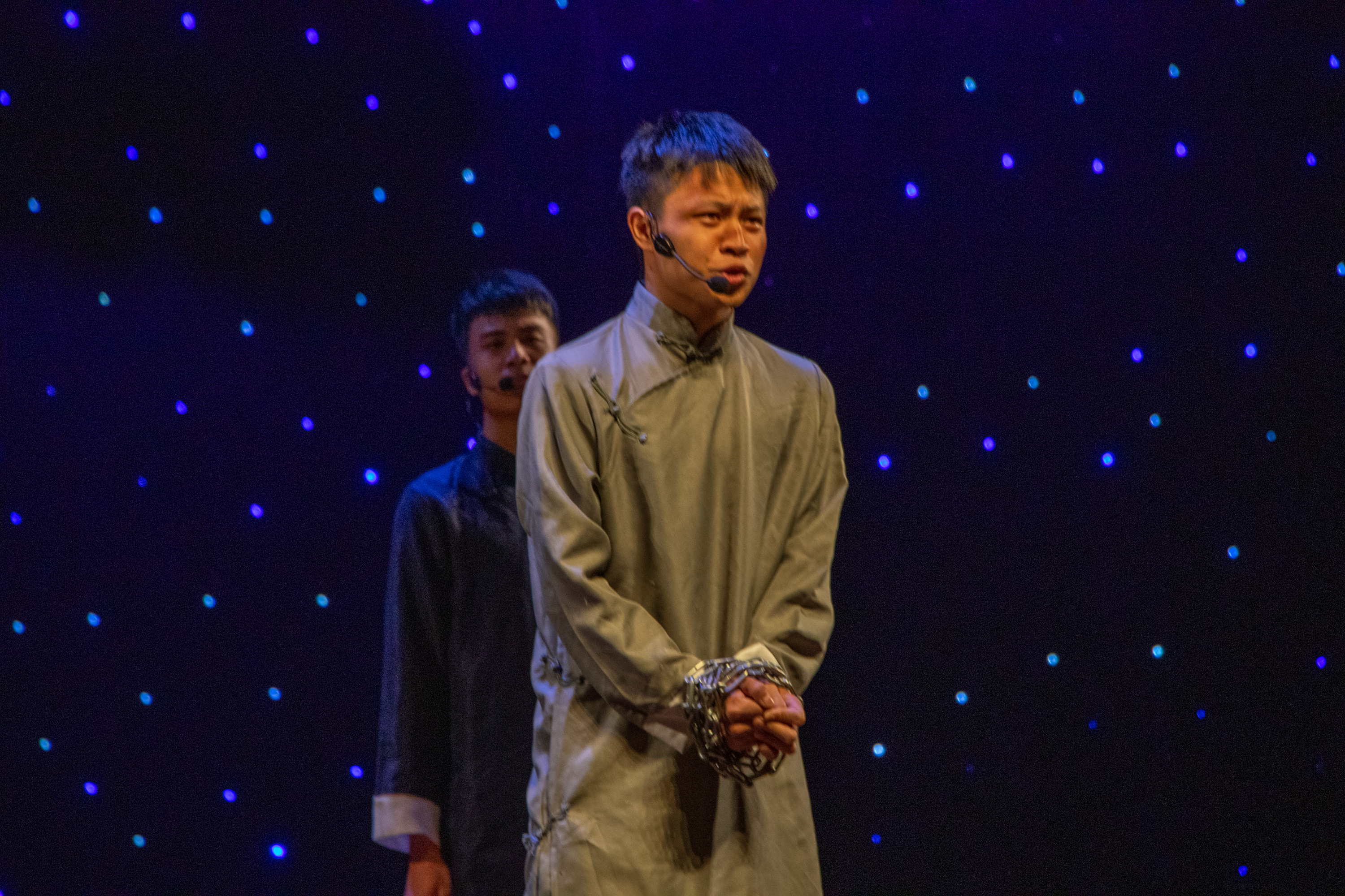 曾子麟等同学带来的朗诵作品《永不回头》,用激昂的语言,有力的回绝,一步一步视死如归的精神,让观看者产生强大的震撼。该作品曾荣获广东省大学生艺术展演朗诵组二等奖。