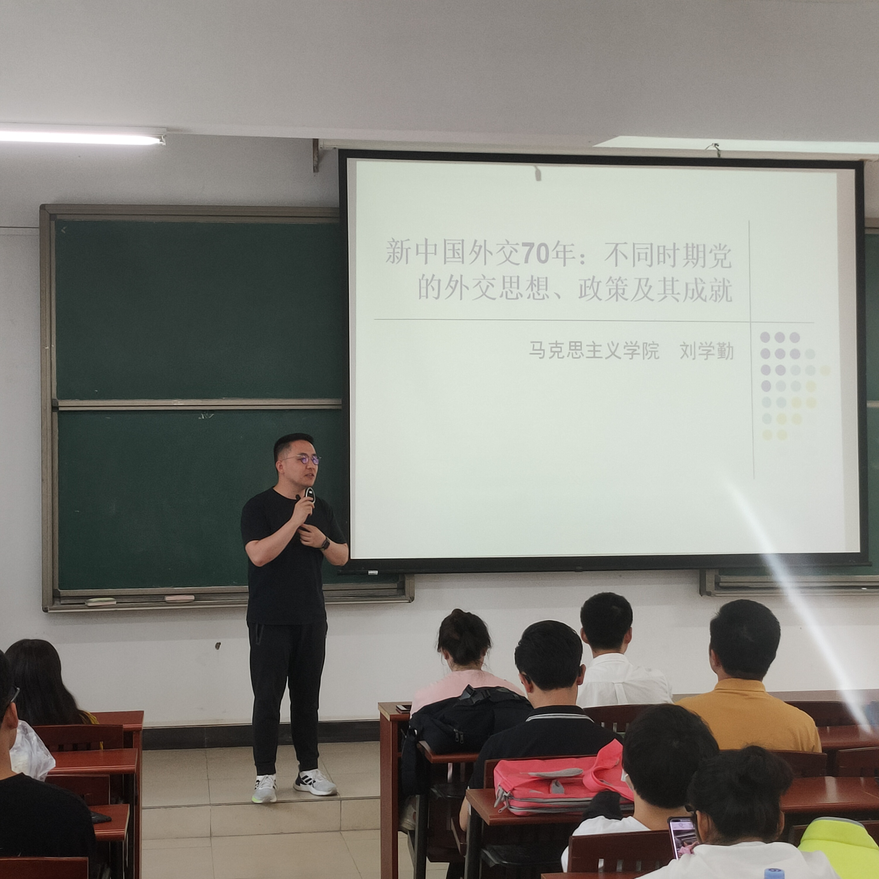 刘学勤老师以《新中国外交70年:不同时期党的外交思想、政策及其成就》为题,讲述了党在三个阶段外交工作中的思想、政策和成就。一是“站起来”阶段,是以维护主权独立完整、保卫新生政权生存、争取国际社会承认为核心使命的“主权维护型”外交;二是“富起来”阶段,以经济建设为中心,实行改革开放;三是“强起来”阶段,用“十个新”来阐述中国外交2013年至今的外交形式。面对我国外交当前面临的百年未有的挑战,刘学勤老师总结指出,有着党的从容应对定力,我国必将走进世界舞台的中央。