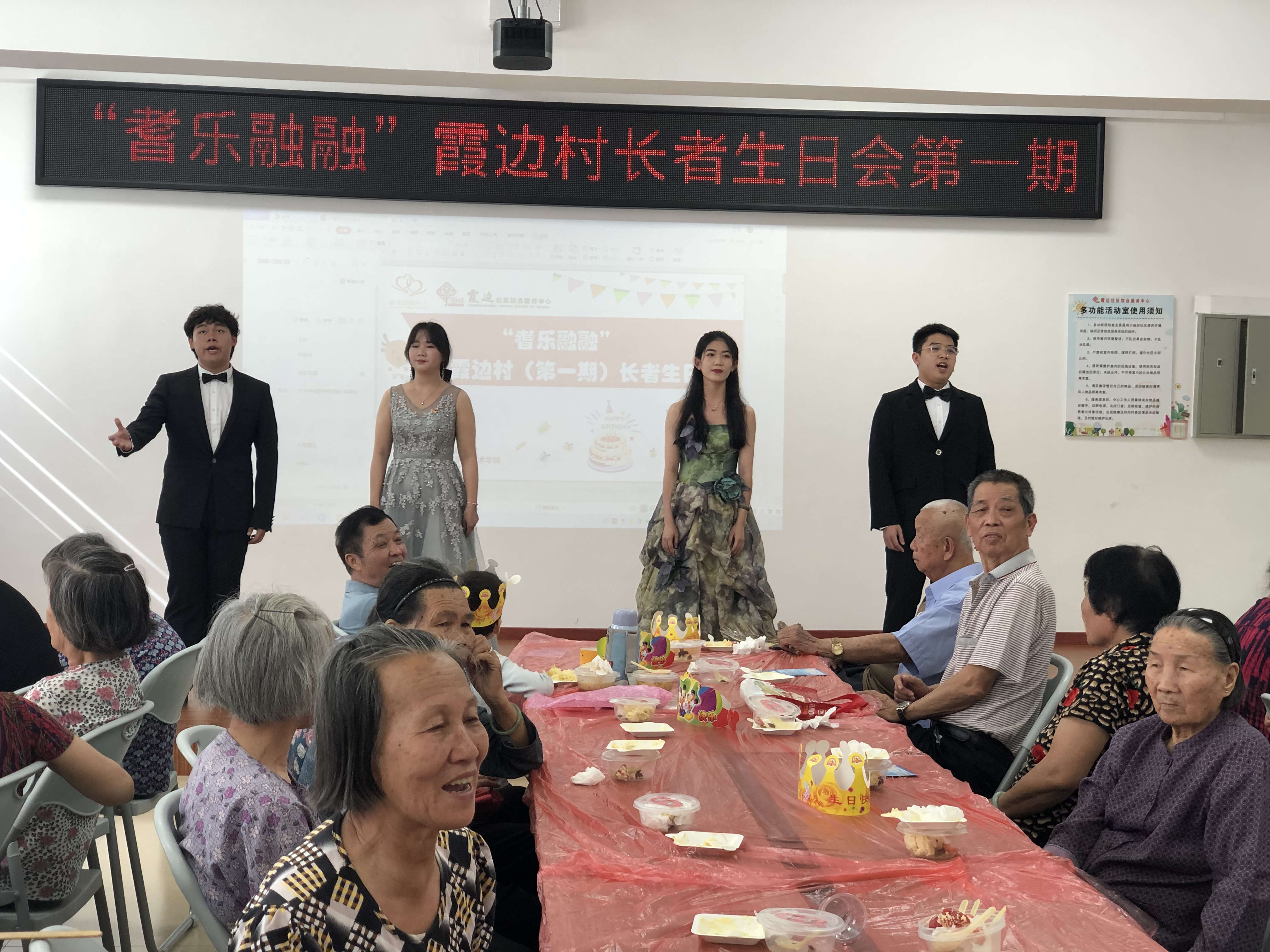 霞边社区社工表示,为长者送祝福的生日会,增强了老人的社区归属感,在社区内营造了尊老、爱老,敬老的和谐氛围,感谢城院艺术学院为此的倾力演出。学生党支部书记谢婷老师感谢霞边社区对学生活动的支持,感谢志愿队和谐的工作接洽,确保了活动的圆满成功。她总结,志愿活动是践行学党史、悟思想,办实事的一个社会实践,学生党支部会继续开展党员志愿等服务活动,为群众多办实事、做群众的贴心人,以优异成绩向党的百岁华诞献礼。