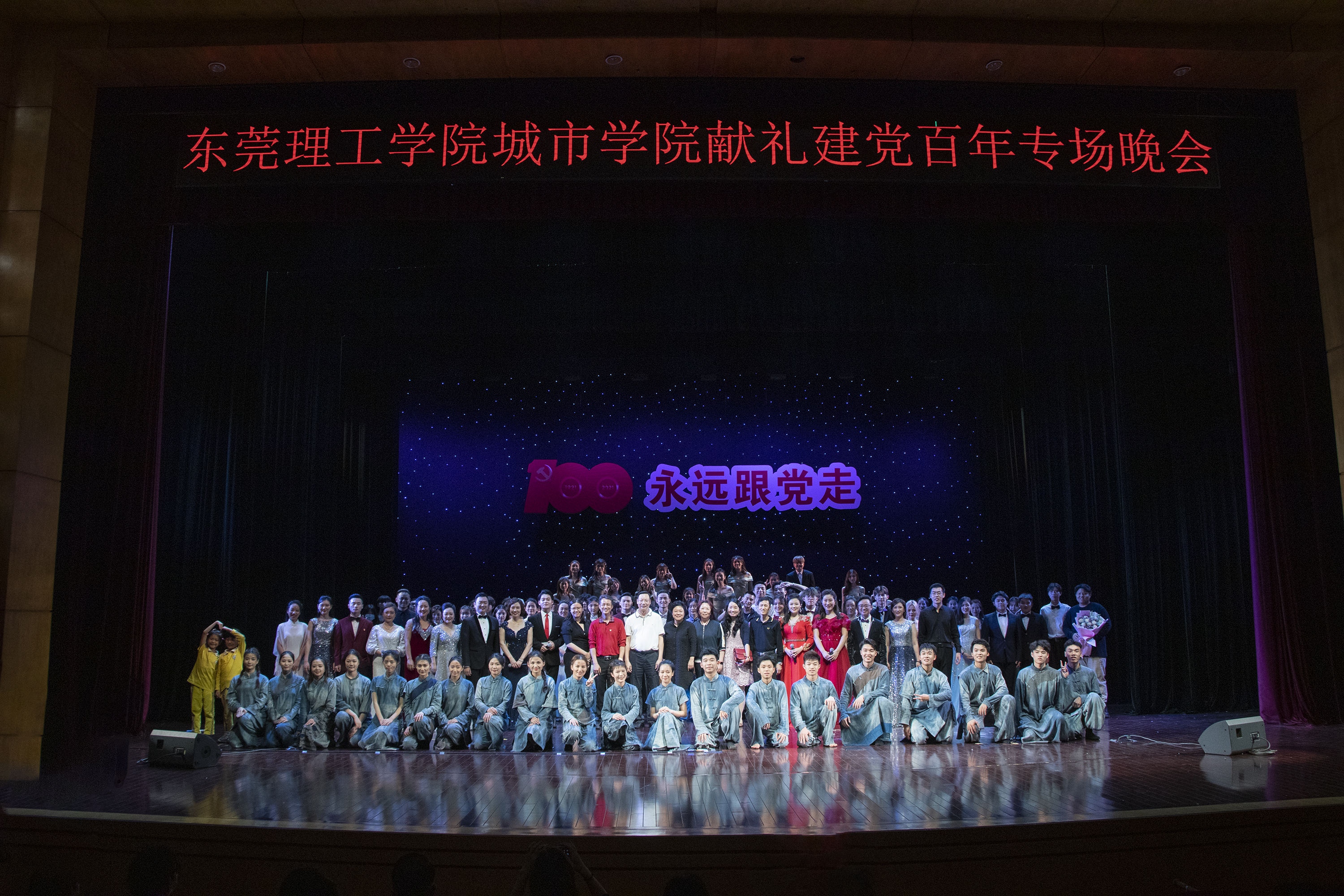 庆祝建党百年华诞之际,学校艺术学院师生在东城影剧院面向社会举办“永远跟党走——献礼建党百年专场晚会”,通过《我爱你,中国》《黄河大合唱》《灯火里的中国》《国家》等最经典、最优秀的文艺作品,弘扬主旋律,凝聚正能量,唱出浓浓的爱党情、爱国情,向建党百年献礼。
