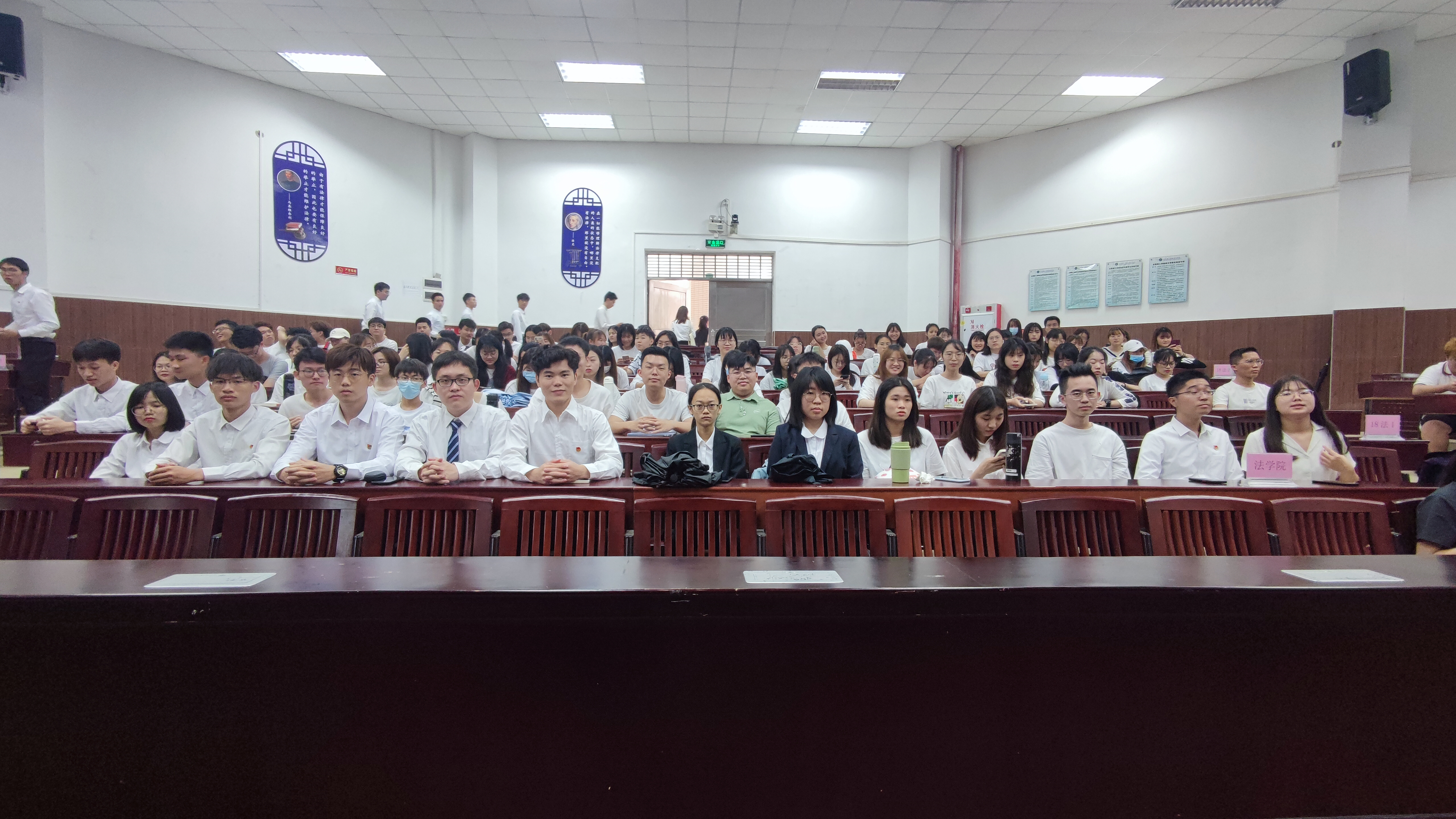 东莞市第一人民法院寮步法庭一行到Beat3657B102模拟法庭,开展《我为群众办实事,巡回法庭进城院》庭审活动,Beat365师生及党员代表近300人参加了庭审旁听。庭审中,法官严格按照庭审程序进行审理,从书记员宣布法庭纪律到当事人陈述、答辩、举证、质证、辩论、最后陈述等各个环节层层推进,以真实的庭审现场、真实的案件现身说法,为Beat365师生上了一堂生动的法律宣传课。