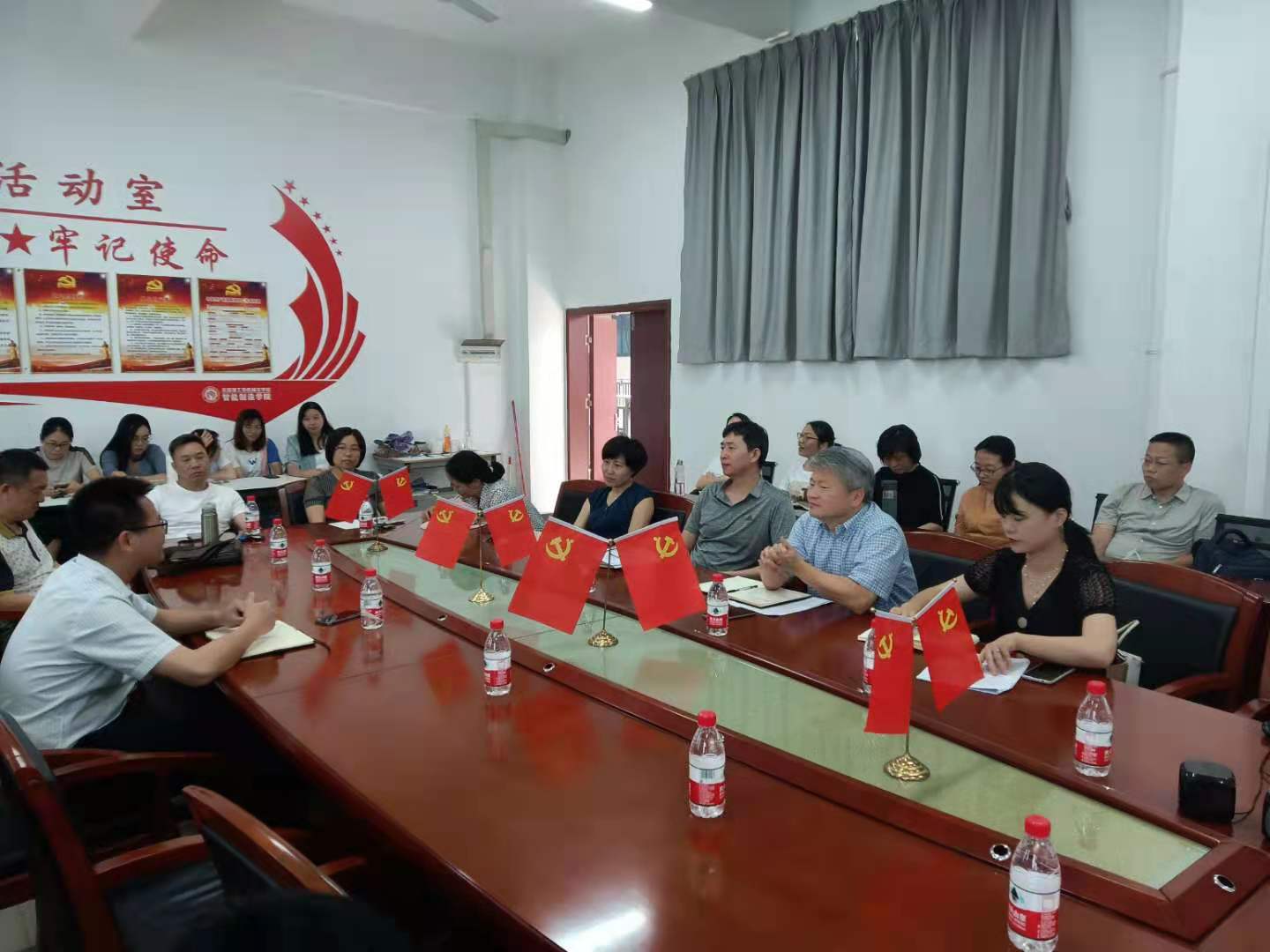 党总支书记殷素峰组织全体教职工共同学习党史——“红船精神”,包括“红船精神”的具体内容、精神内涵以及“红船精神”对于当代社会的现实价值。