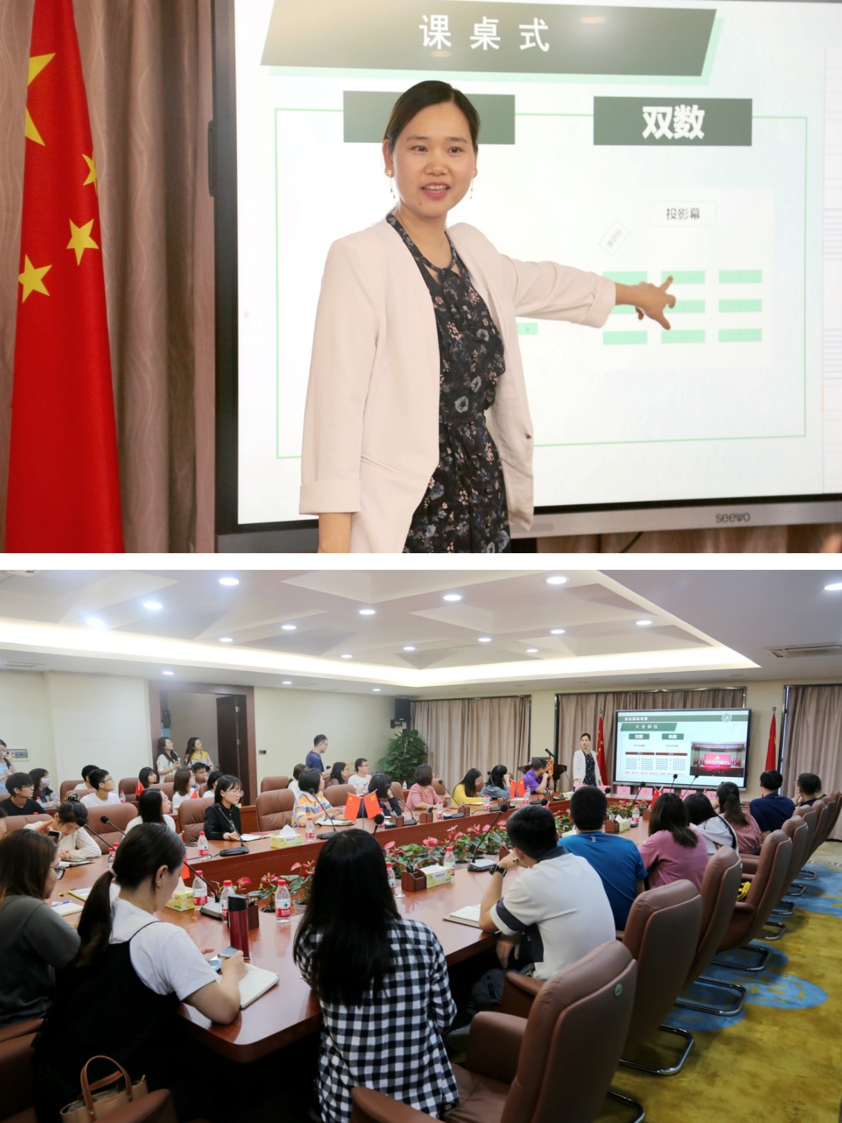 为落实党史学习教育工作要求,积极开展“我为群众办实事”实践活动,机关党总支联合党政办公室、党委组织部开展锦囊分享会(第2期)暨行政工作培训。党政办行政科科长韦晓霞结合自己多年的行政工作经验,从会务工作者的角度,通过会务工作主要流程、参考规范及工作心得三个方面向现场师生分享如何做好会务工作。