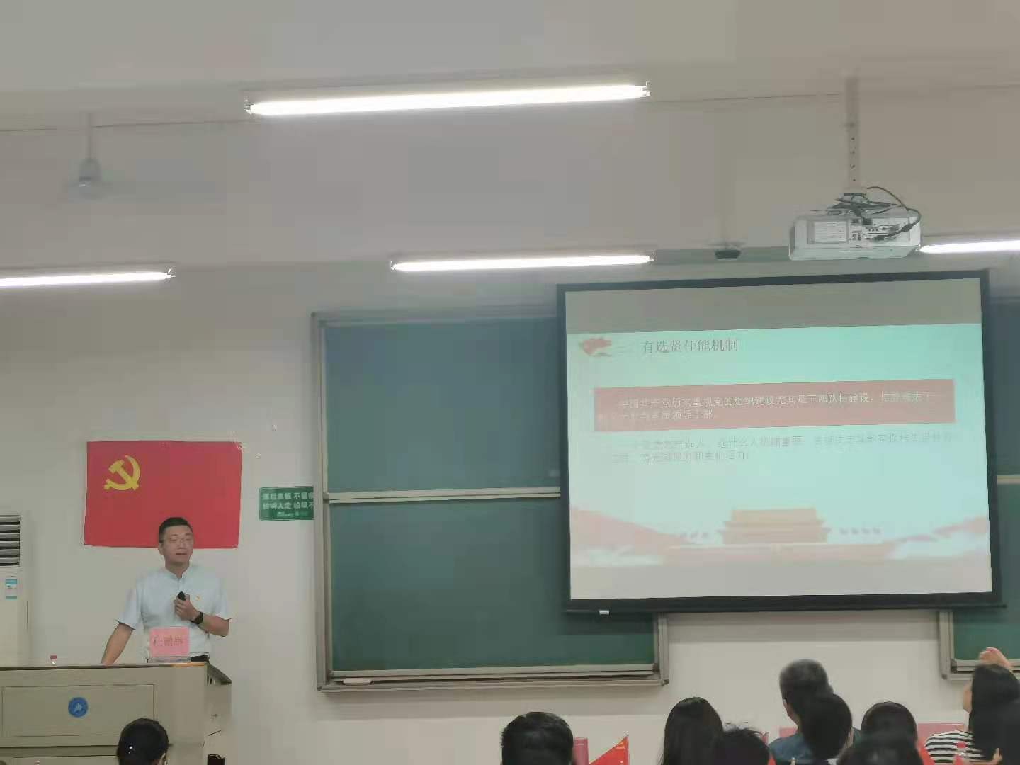 杜鹏举从有远大理想追求、有科学理论引领、有选贤任能机制、有严明纪律规矩、有自我革命精神以及有强大领导能力六大主题来讲述党为什么“能”,强调党的自我革命精神是我党的优秀品格,是一种政治勇气也是一种辩证否定的实践活动,以此启示外国语学院学子应时时自省,敢于挑战,不断学习新思想,筑牢理想信念根基。