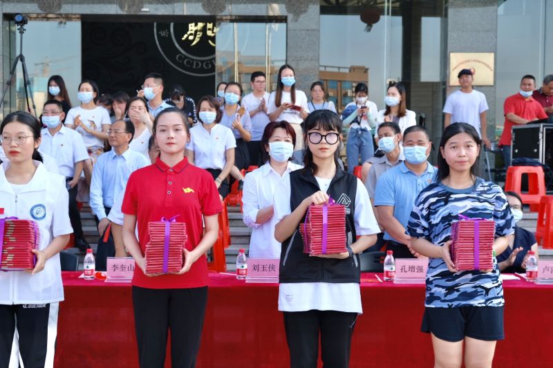 6月3日下午,学校在行政楼前举行庆祝建党100周年“升国旗交流展示暨同唱一首歌”活动。寮步镇退役军人服务中心副主任李敏怡、鸿发教育集团副总经理李奎山、寮步退役军人服务中心文拥军、泉塘派出所警长卢耀坤、寮步镇人民武装部干事尹锐新。学校党委书记章德胜,党委副书记、校长王卫平,党委副书记、副校长高香林、黄兢,副校长周庆、刘玉侠,各相关单位负责人、各党总支(直属支部)书记、副书记全校师生近四百人参加。武装部副部长刘维仝主持会议。