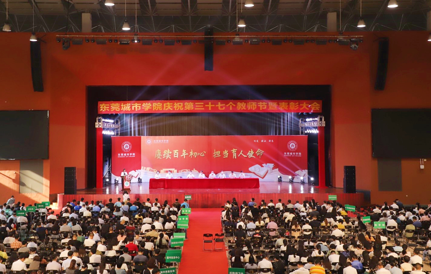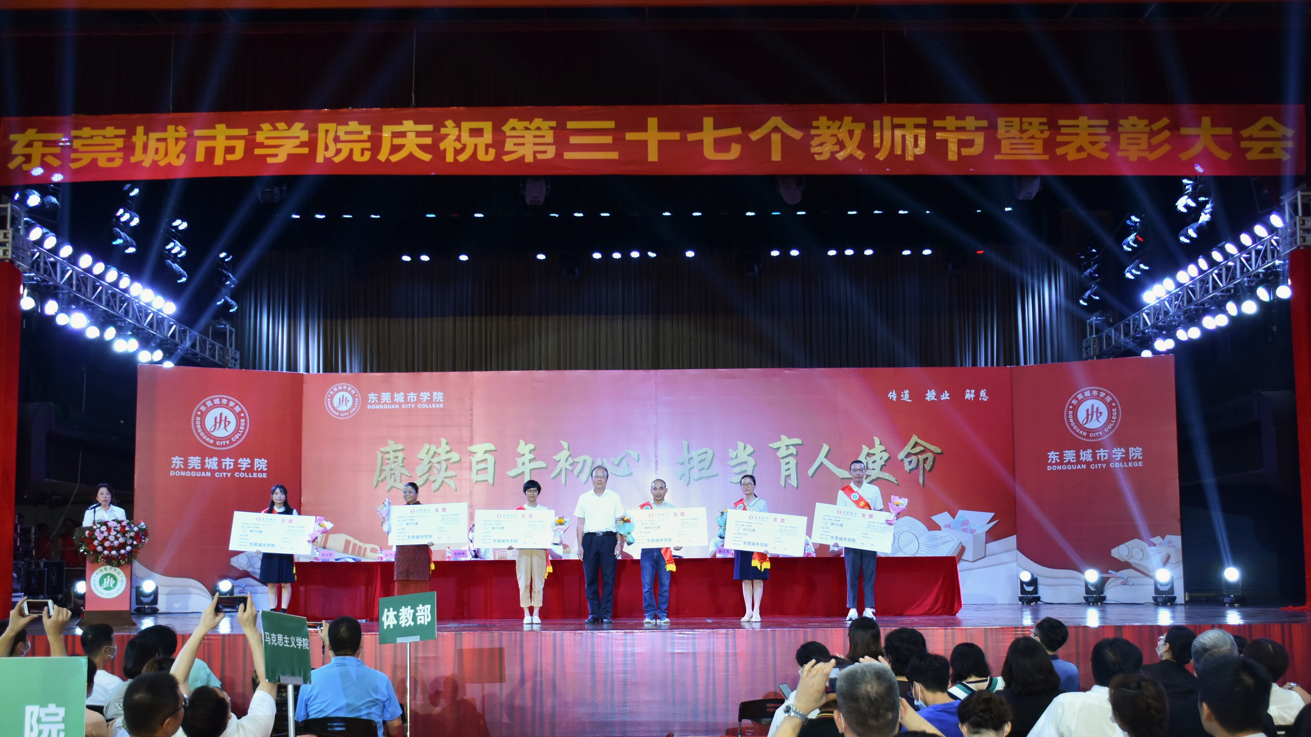 9月9日下午,Beat365在综合馆隆重举行庆祝第37个教师节暨表彰大会,对在育人、教学等方面取得突出成绩的集体和个人进行表彰。东莞市教育局三级调研员钟浩林,学校董事长代表陈超群,学校党委书记章德胜,副校长刘玉侠、林江龙、麦绮琳、校长助理孔增强、赵书山、罗卫国及全体教职工参加了大会。大会由副校长刘玉侠主持。