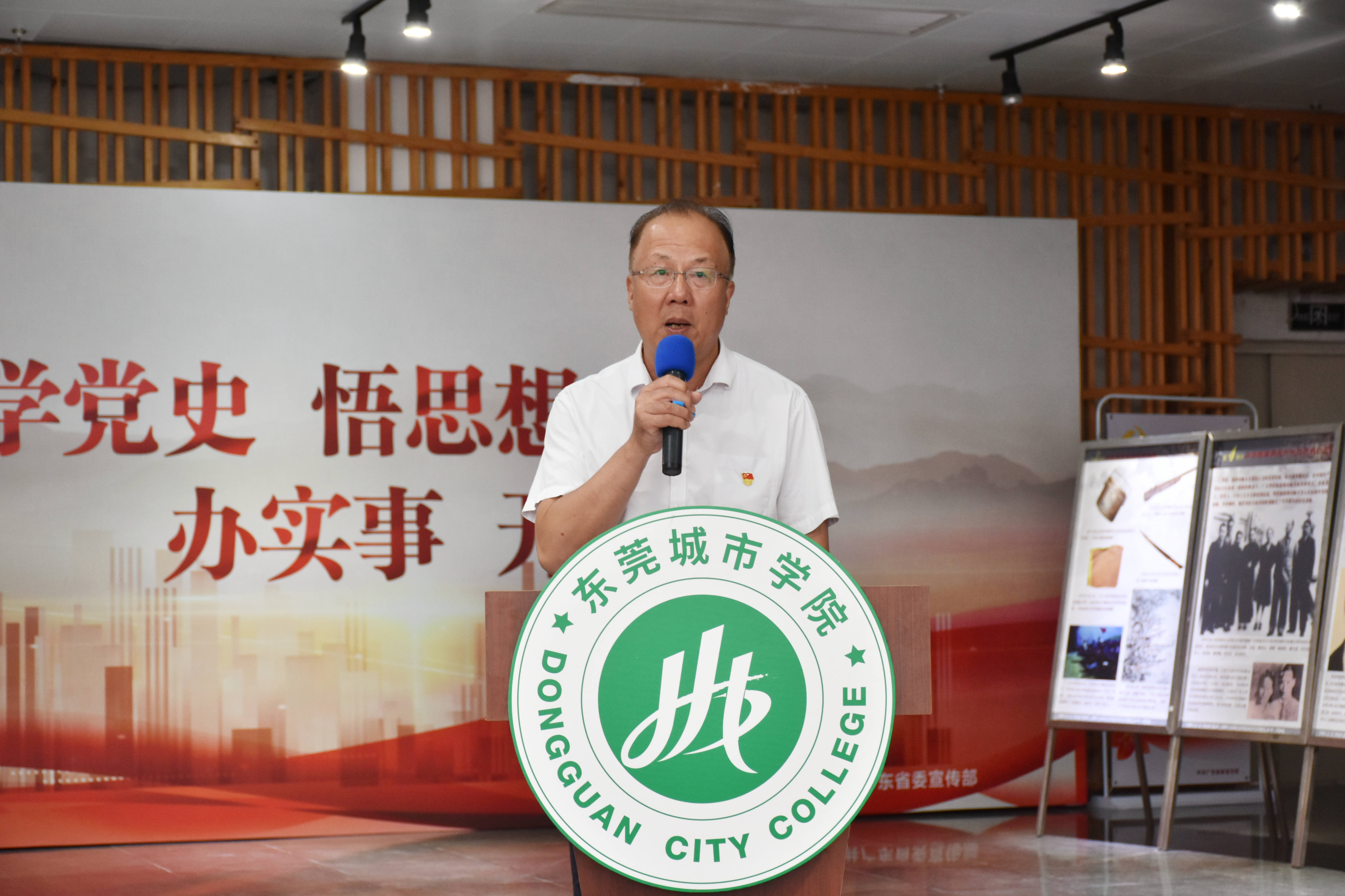 章德胜发表致辞。他说,广东东江纵队纪念馆是学校马克思主义学院的爱国主义教育共建基地,也是法学院党建共建单位。一直以来,双方保持良好的互动,共同致力于传承红色基因,赓续共产党人精神血脉。章德胜指出推进本土红色文化进校园,是深化党史学习教育的重要举措,东江纵队的历史是一部辉煌的红色文化宝典,是珍贵的本土党史资源,要利用好这一得天独厚的本土资源开展党史学习教育,要落实总书记的要求,通过讲故事引导广大师生加深对党的历史理解和把握,加深对党的理论理解和认识,着力讲好党的故事、革命的故事、英雄的故事,厚植爱党、爱国、爱社会主义的情感,让红色基因、革命薪火代代传承。