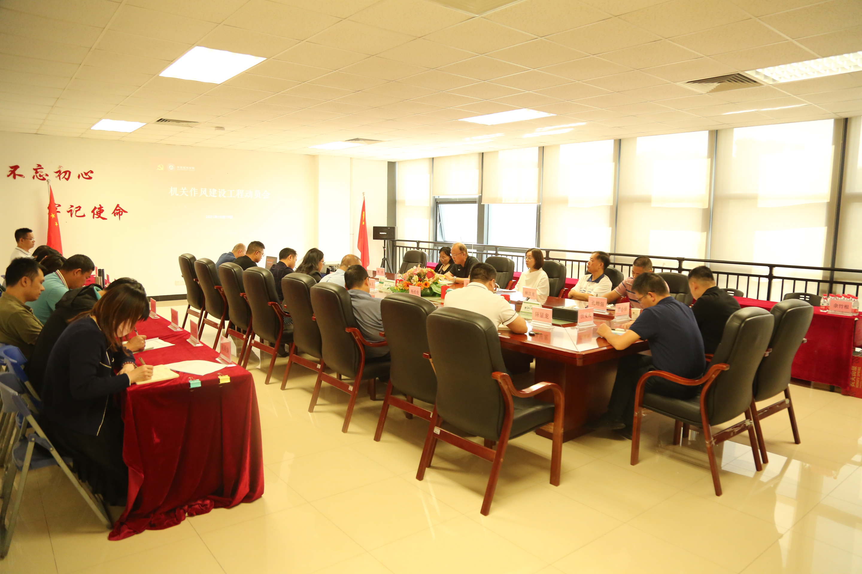 为持续深入开展党史学习教育,推进“我为群众办实事”实践活动,改进机关工作作风,增强责任担当,提升管理服务效能,10月18日上午Beat365召开机关作风建设工程动员会。校领导章德胜、周庆、林江龙、麦绮琳和机关作风建设领导小组成员出席了会议。会议由党委委员、党政办主任、机关作风建设领导小组组长孔增强主持。