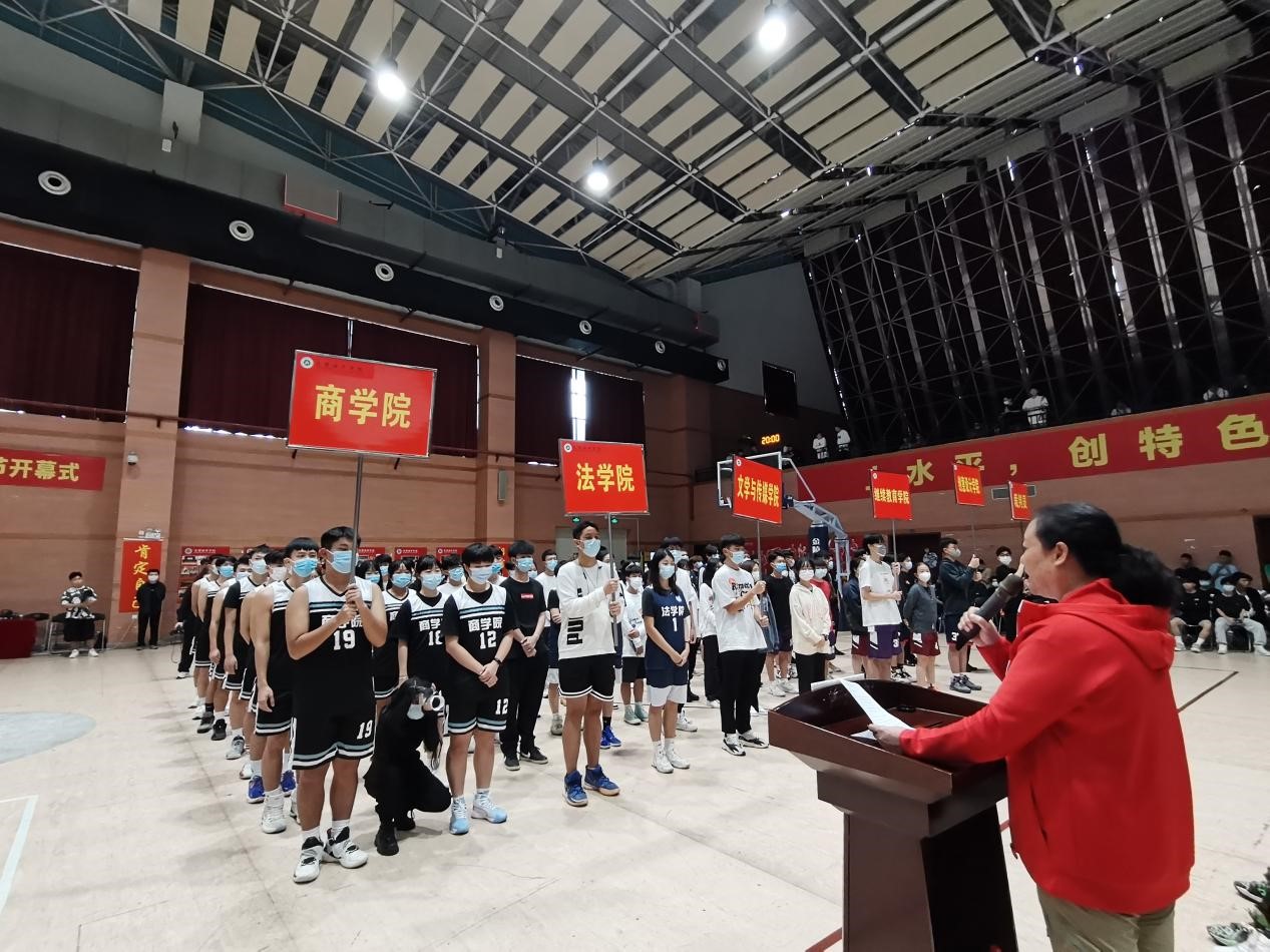 紧接着,裁判员和运动员代表分别宣誓,各学院啦啦队充满活力的精彩表演。体育教学部主任王艳云宣布2021年篮球文化节开幕。揭幕战随之打响,对阵双方分别是金贸学院男子篮球队和计信学院男子篮球队。
