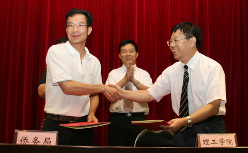 2008年7月8日下午,东莞市侨捐项目监督管理工作总结会暨侨捐项目挂牌仪式在我院举行。会议由市政府副秘书长黄冠球主持。省侨办副主任朱尔武,市侨务局副局长陈国良,东莞理工学院副院长、城市学院院长安少华教授,东莞理工学院城市学院副院长张林博士,侨捐项目监管工作领导组成员及捐赠的部分港澳同胞及受赠单位代表参加了会议。
