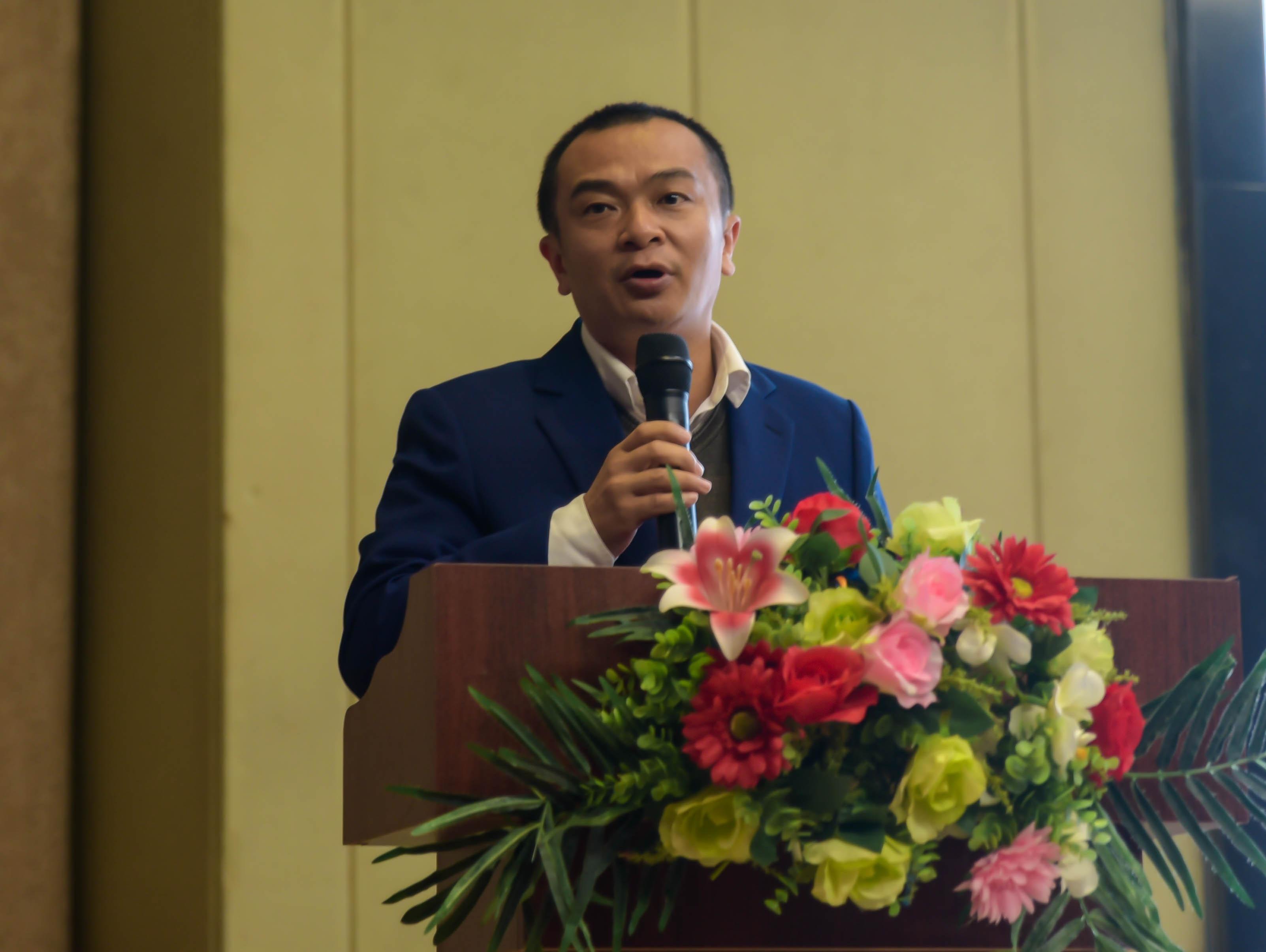叶云峰副主任致辞,他表示大媒是学校党委宣传部(融媒体中心)下属的学生组织,要始终传递正能量,讲述身边好故事为宗旨,继续配合做好学校各项宣传工作。他对大媒新进成员提出四点要求。一是坚持正确向导,提高校园媒体领导力; 二是练就过硬本领,提升校园媒体竞争力; 三是增强传播时效,讲好城院人故事,传递好城院声音;四是加强工作团队建设,团建互助相融。
