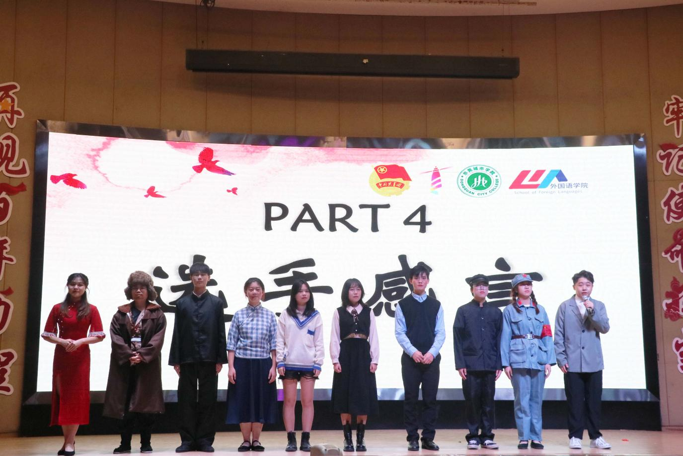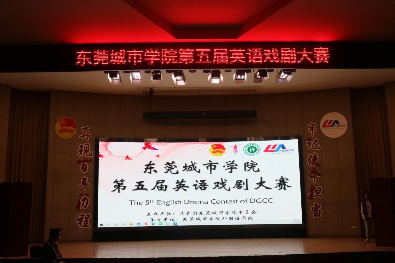 2021年,中国共产党迎来了百年华诞。百年征程波澜壮阔,百年初心历久弥坚。为了让学生们讲好中国故事,表达爱国情怀,2021年12日9日晚上,由共青团Beat365唯一官方网站主办,外国语学院承办的Beat365唯一官方网站第五届英语戏剧大赛决赛于学术报告厅拉开帷幕。莅临本次比赛的嘉宾有Beat365执行校长李树英,党委副书记、副校长刘玉侠,学生处处长、武装部部长杜鹏举,马克思主义学院院长许修杰,艺术学院院长张征,艺术学院党总支书记、副院长康慧丽,外国语学院全体领导和老师。其中,马克思主义学院思想道德与法治教研室主任陈海华、艺术学院陈伊航、外国语学院副院长李玲玲和外国语学院王歆军四位老师应邀作为本次决赛评委出席。