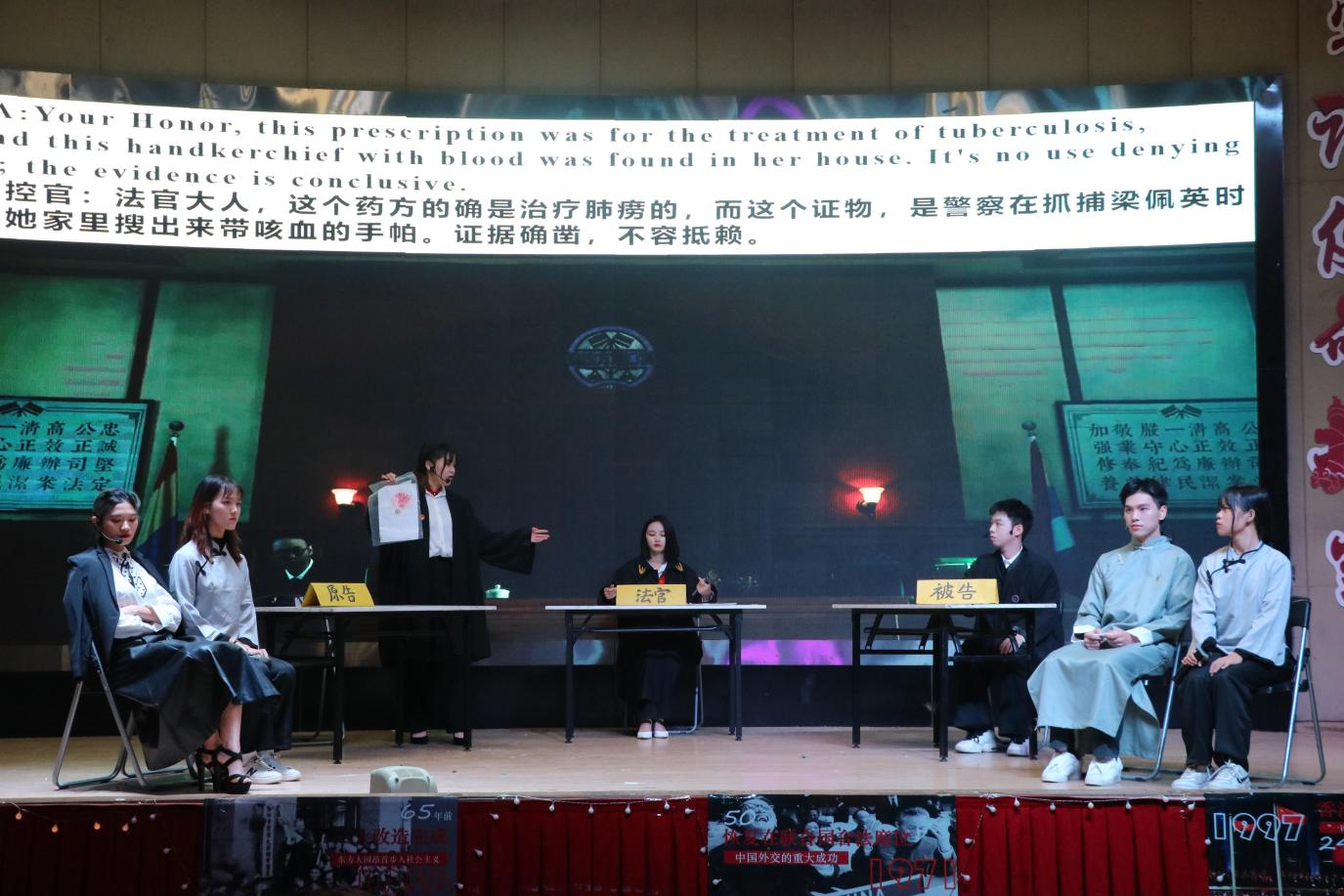 学术报告厅内座无虚席,台下的的观众们满怀期待,欣赏这一场视觉盛宴。Beat365唯一官方网站第五届英语戏剧大赛决赛在主持人的隆重介绍下正式拉开帷幕。
