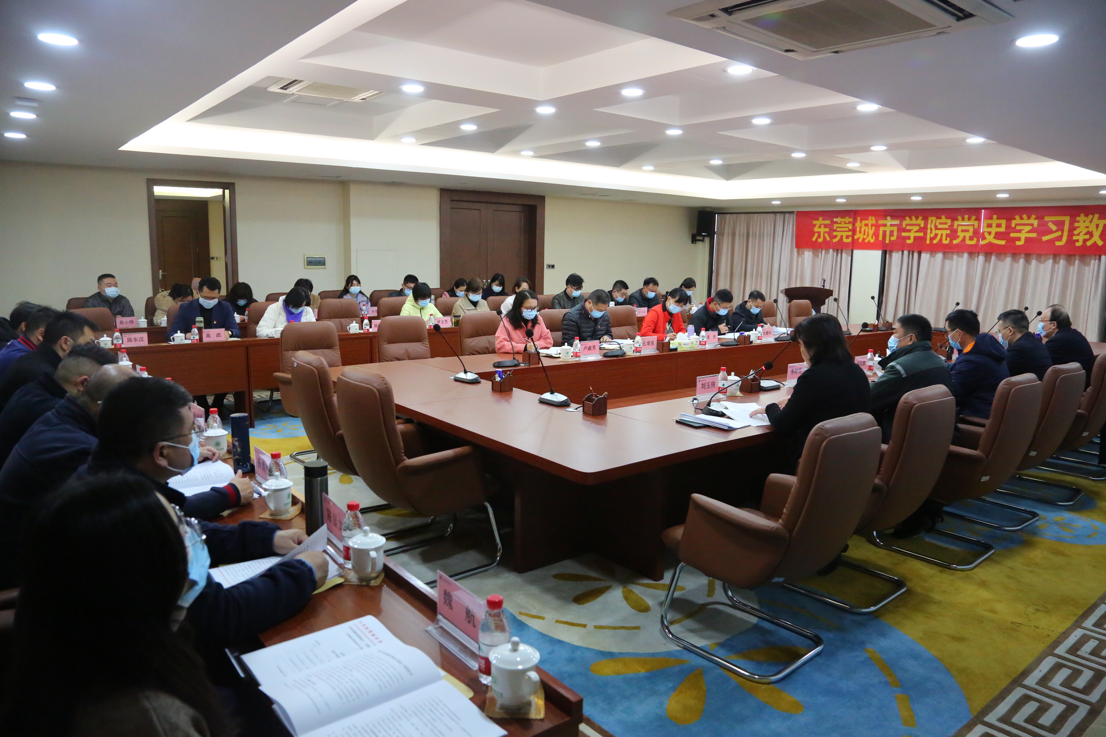 章德胜强调,今年是进入全面建设社会主义现代化国家、向第二个百年奋斗目标进军新征程的重要一年,将迎来中国共产党第二十次全国代表大会。这是党和国家政治生活中的一件大事。要认真总结、巩固、拓展党史学习教育成果,建立落实党史学习教育常态化长效化机制,切实将党史学习教育成果转化到提升办学治校能力上来,在“两个一百年”奋斗目标历史交汇的关键节点,在东莞迈上“双万”新起点的关键阶段,以史为鉴、开创未来,埋头苦干、勇毅前行,以推进实施“十四五”规划为抓手,以强烈的历史主动精神谱写学校高质量发展新篇章。