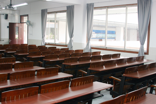记者走在刚刚装修完工的教学楼中,崭新的课桌椅和空调,使课室焕然一新,散发着时代气息。明亮洁净的玻璃窗挂着新购置的素色窗帘,白炽灯、电源开关、滑动黑板都是新的。改建完成的学生公寓设施完善齐全,给人以家的感觉。