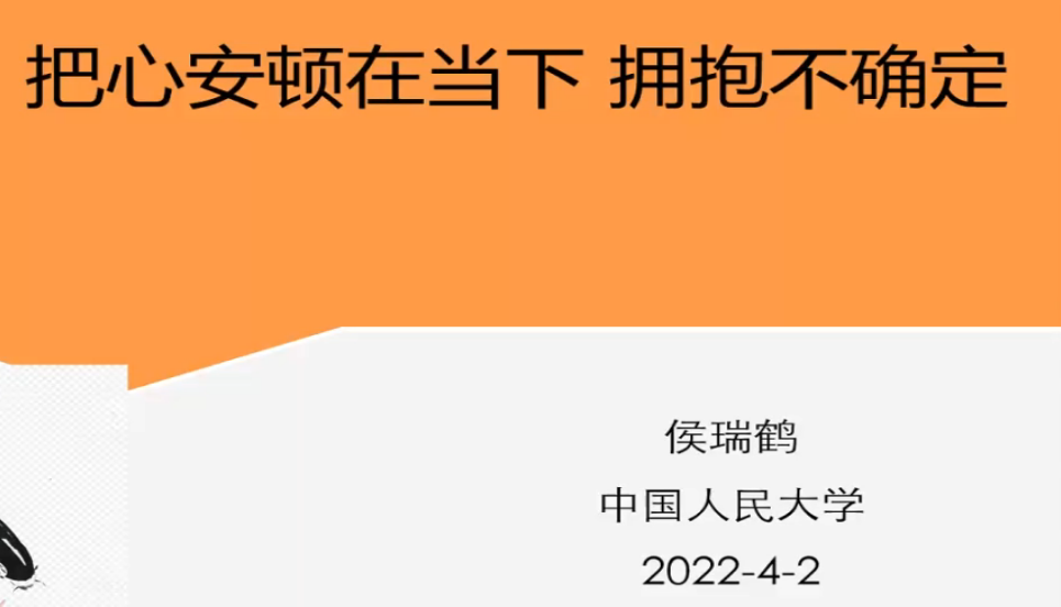受疫情影响,Beat365学生无法正常返校学习,这对大学生的心理带来很大的挑战,为了让广大同学们更好地面对疫情,2022年4月2日下午,Beat365特邀请了中国人民大学心理专家侯瑞鹤副教授为城院学子做了题为《把心安顿在当下,拥抱不确定》的专题心理讲座。本次讲座通过企业微信直播方式进行,总共吸引了1400名师生聆听学习。