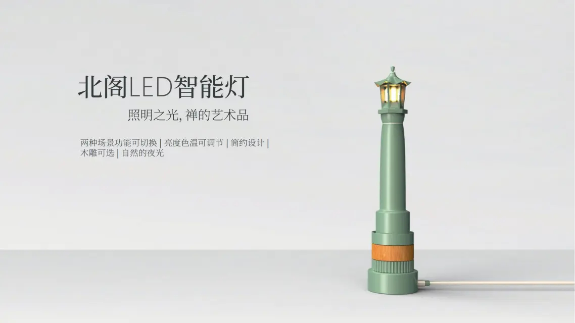 《丝绸之光北阁LED灯》参赛队伍来自创意设计学院师生组。该作品的设计灵感来源于新疆第一高塔——丝绸之路观光塔,它耸立在新疆国际大巴扎内,夜间灯光远照漫漫丝绸之路,是新疆标志性建筑之一。此文旅产品灯寄托着人们对禅的敬意。在漆黑的夜间,我们正需要一盏可以通明的小夜灯,在不使用时底座持续给予充电。平时的它充当小夜灯,在特殊情况下可以将其拔起成为手电筒使用。