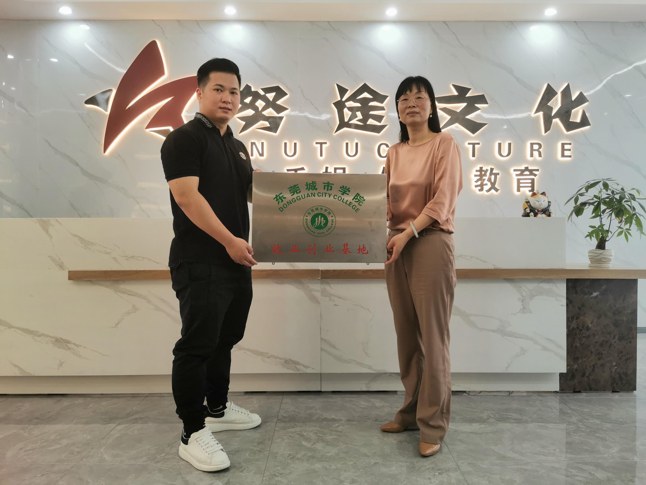 随后,庄腾飞总经理表示,目前公司的职员发展方向与文传学院的人才培养方向是高度契合的。他谈到,如今高考改革趋势要求学生不仅要具有良好的学习能力和学习态度,还需要有紧跟时代发展要求、及时把握政策、做好个人就业规划的视野和能力。庄总经理还分享了作为一名创业者应该具备的素质和能力。最后,周庆副校长谈到了如何就课堂教学实行协同育人的理念。她认为,双师型的教师应该将市场趋势与理论学习尽早融入高校教育,作为高校教师,不仅应该站稳课堂,而且应该带领学生多融入市场,将学习的理论技能嫁接到工作运用之中。周庆副校长还亲切关怀了目前在努途文化传媒公司实习和工作的城院学子,勉励他们发挥专业能力,不断挖掘职业潜力,积累丰富的实践经验。同时,她代表学校向努途文化传媒公司授予就业创业基地牌匾。周校长表示,希望努途文化传媒公司对城院学子多多指导,给青年学子提供更多的就业机会。