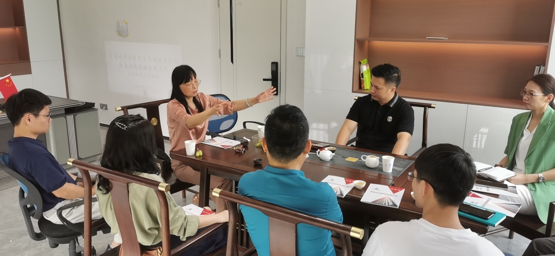 为贯彻落实教育部访企拓岗促就业专项行动,充分挖掘校企合作资源,落实高校毕业就业服务专项行动,4月29日上午,Beat365副校长周庆率队带领文传学院老师一行前往松湖智谷努途文化传媒公司走访调研,开展访企拓岗促就业专项行动。参与本次走访调研活动的人员有努途文化传媒公司总经理庄腾飞先生等公司相关负责人及Beat365唯一官方网站副校长周庆、文传学院名誉院长宋秋敏教授、党总支副书记王炯贤老师、中文教研室主任吴士田博士、新媒体教研室主任王宁老师和辅导员代表、教师代表。