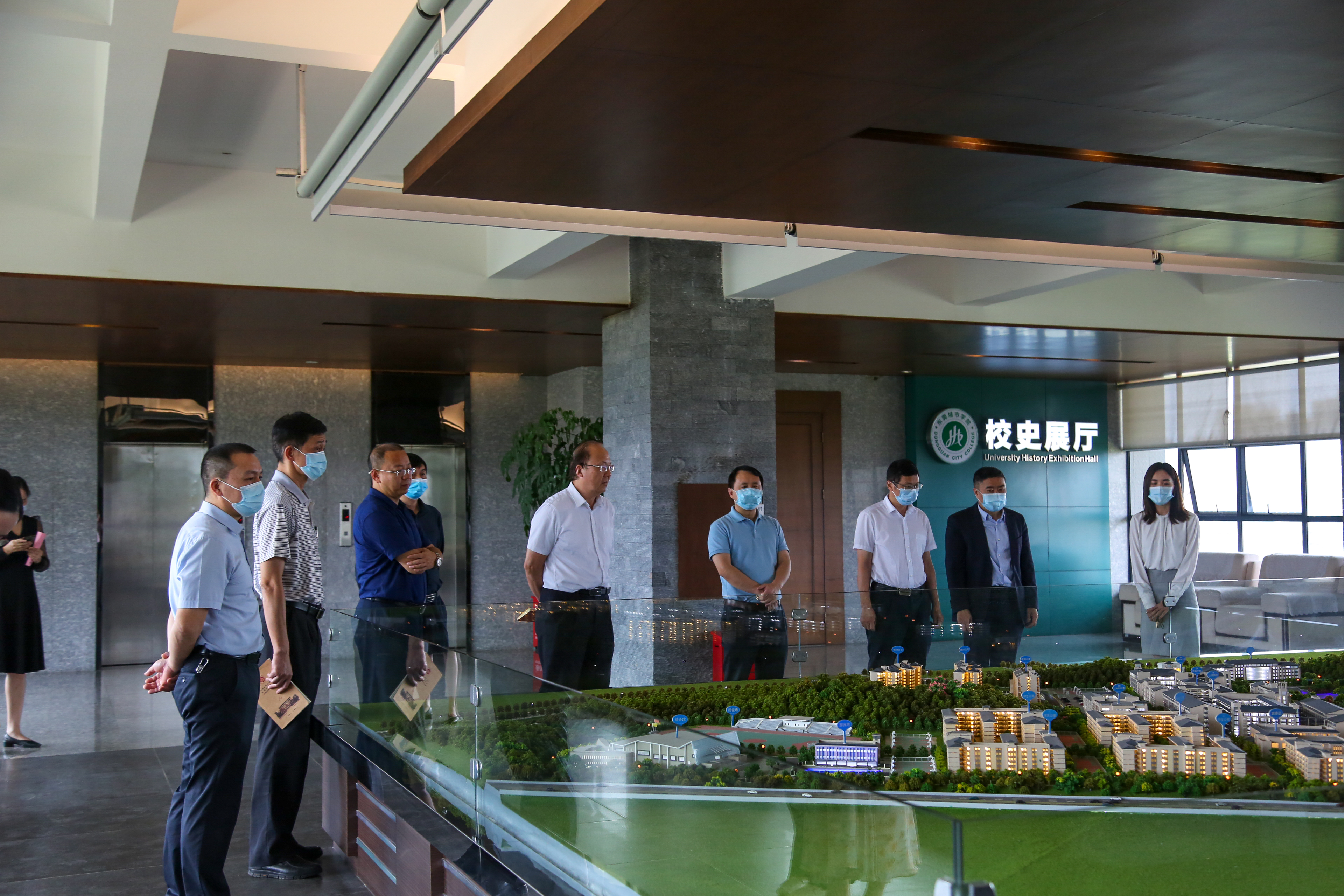 张卫红主席一行在Beat365执行校长李树英、党委书记章德胜等校领导的陪同下,俯瞰了校园美景,听取了Beat365校园整体布局的沙盘讲解。随后双方在行政楼505会议室召开了调研座谈会,会议由杨勇虎处长主持。