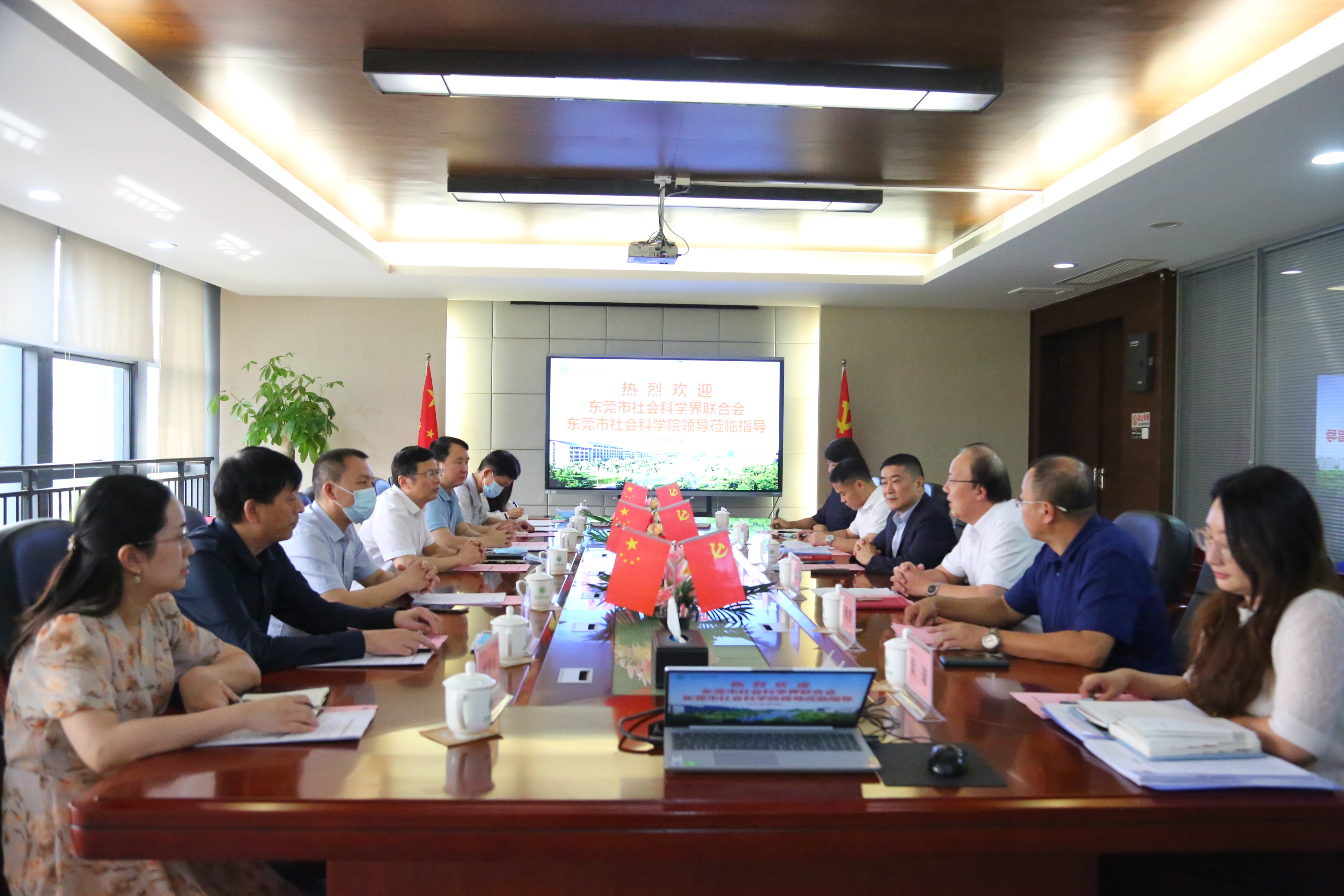 市社科联张卫红主席介绍了市社科联出席嘉宾和此行目的。双方从党的建设、社科平台、社科政策、合作交流等多个方面开展了深入讨论交流。张卫红主席指出市校双方加强交流合作,广泛联系专家学者,积极开展社科宣传普及研究,为东莞在“双万”新起点上加快高质量发展提供智力支持!希望能够早日在Beat365建立东莞市社科联分会,加强市校间的联系,提高Beat365社科教育工作的水平,为Beat365社科工作的开展提供更好的平台与资源。