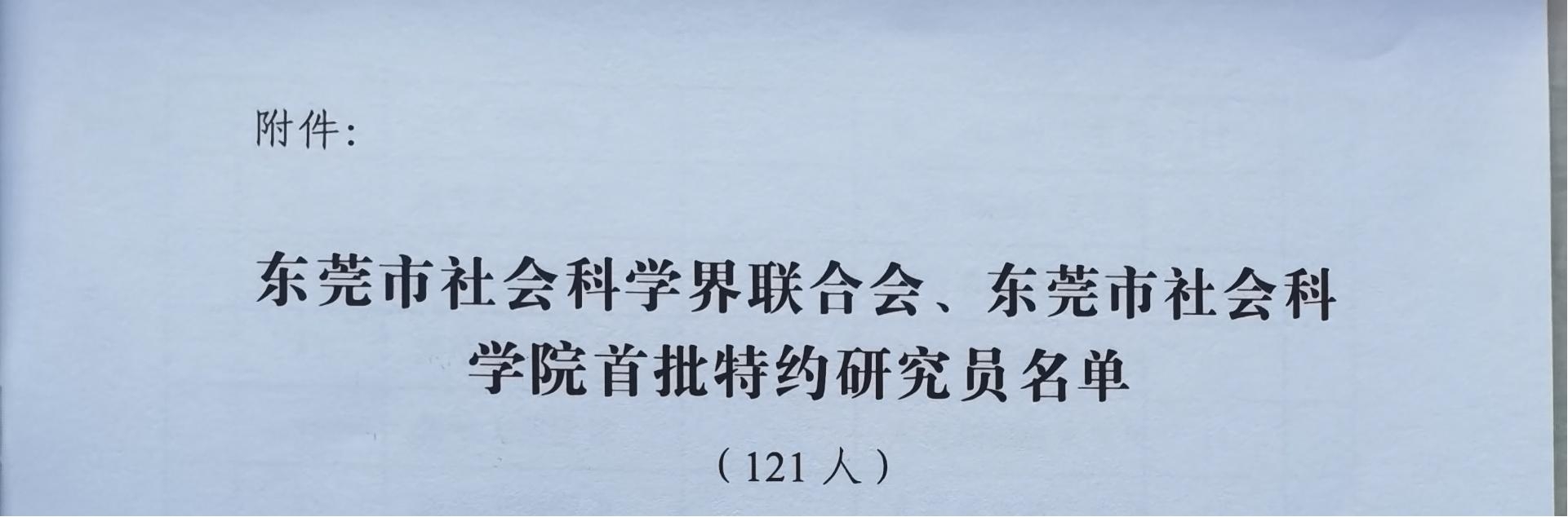 据悉,为聚集东莞全市社科研究力量,更好地为市委、市政府决策提供理论支撑和智力服务,助力东莞“双万”新起点上加快高质量发展,经广泛推荐和遴选,东莞市社会科学界联合会、东莞市社会科学院聘任121名首批特约研究员,聘期三年。