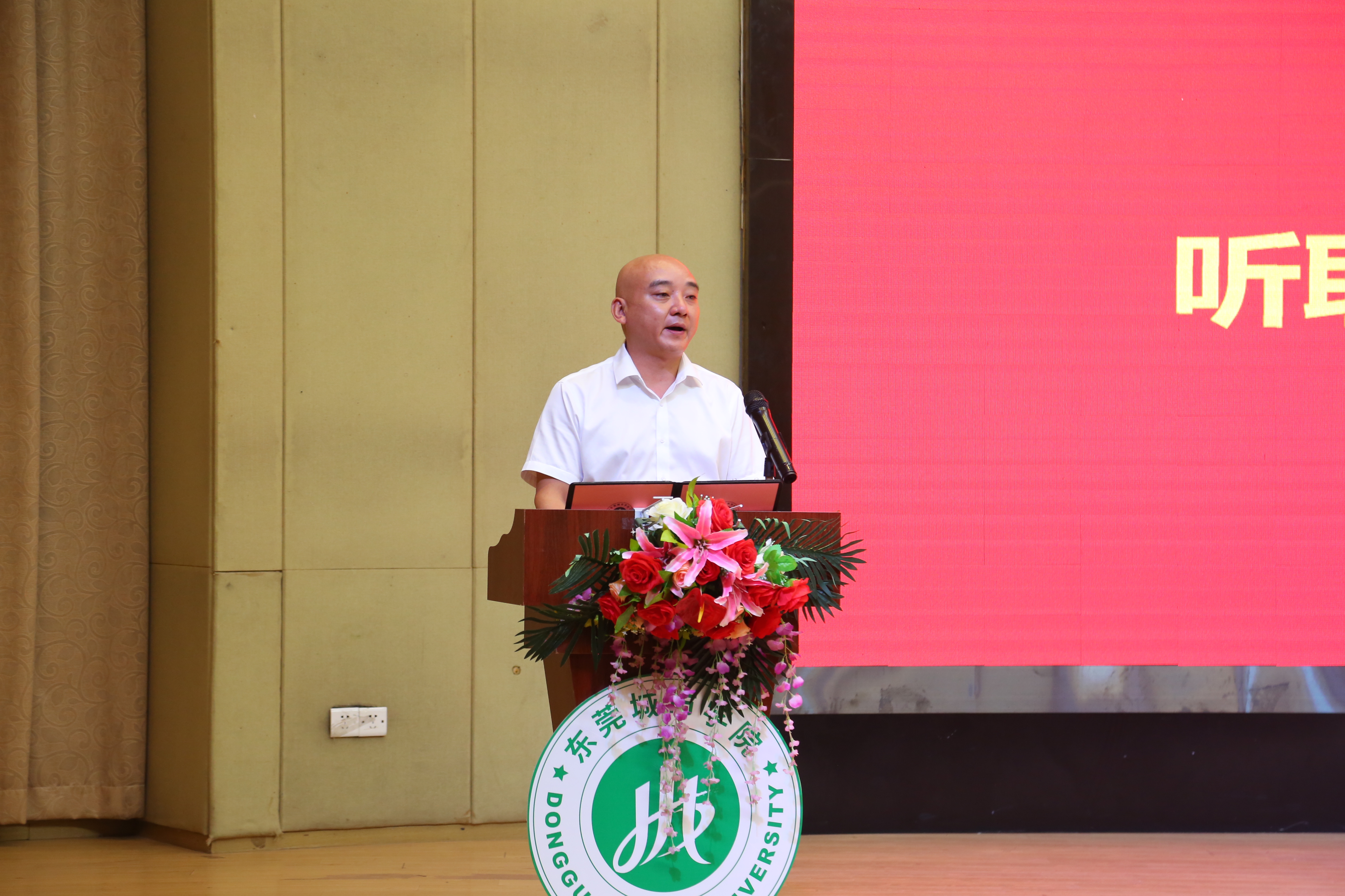 在雄壮激扬的国歌声中,大会拉开帷幕。执行校长李树英作《同心同德,干事创业,奋力推进学校高质量发展》的工作报告。报告全面回顾了学校2021-2022学年度工作情况。过去的一学年,学校完善发展顶层设计与管理领导体制设计,科学制定学校“十四五”发展规划,高标准高质量推动党史学习教育,进一步优化基层党组织设置,党建工作水平再获提升。学校坚持依法治校,全力做好新冠疫情防控工作,有效保障校园稳定。学校奋力推行人事制度改革,激发体制机制活力,不断优化师资队伍结构,提升人才队伍素质。学校招生规模创历史新高,构建了完备的三全育人体系,继续深入人才培养模式改革,进一步加强专业建设和课程建设。科研业绩大幅提升,学校启动硕士研究生联合培养,成功获批广东省博士工作站。学校不断加强国际交流与合作,构建全员参与、全领域覆盖的立体式新媒体平台,品牌建设水平不断提升。学校进一步完善校园硬件建设,新一代校园网建设完成更新,馆藏资源不断丰富,为师生提供更良好的学习生活环境。同时,李树英也指出了学校还存在一些不足之处。