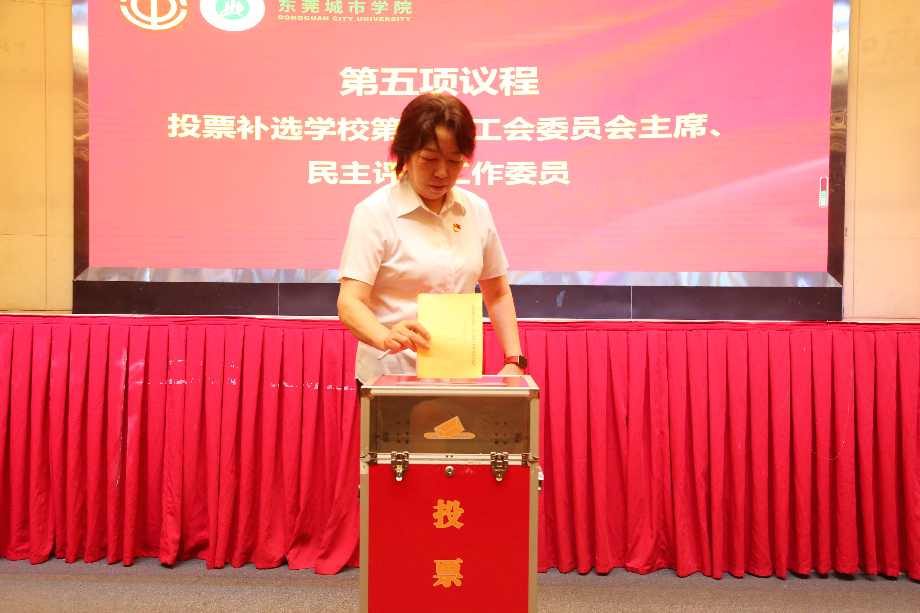 随后,大会投票补选了学校第三届工会委员会主席、民主评议工作委员会委员。经大会选举投票,刘玉侠当选学校第三届工会委员会主席,叶佳宜当选民主评议工作委员。