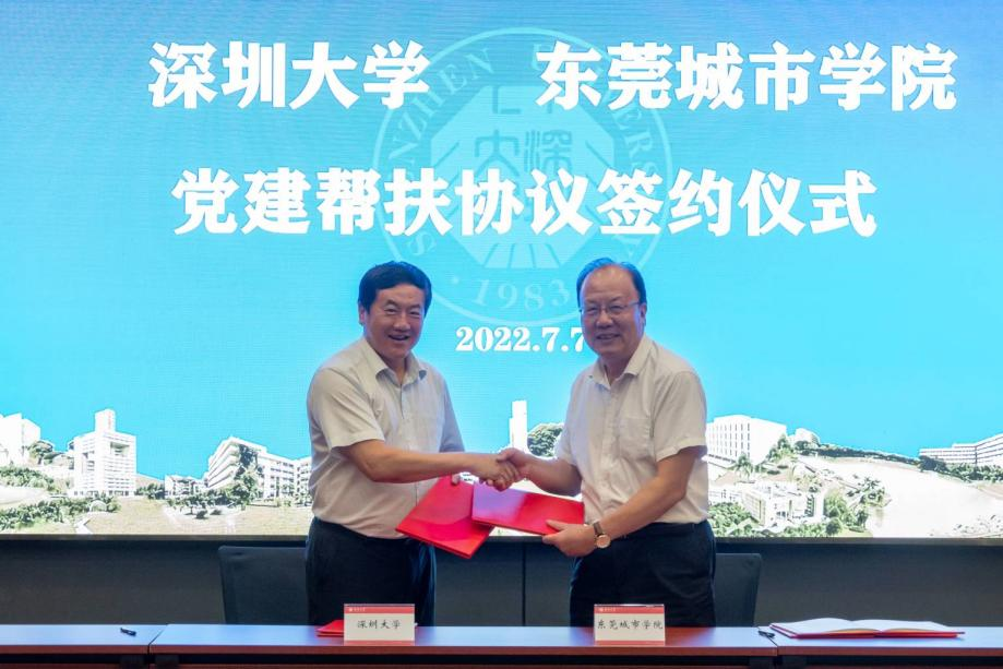 交流座谈结束后,深圳大学党委副书记范志刚与Beat365党委书记章德胜签署党建“组团式”帮扶协议。