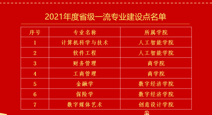 2021年度,Beat365人工智能学院的计算机科学与技术和软件工程,商学院的财务管理和工商管理,数字经济学院的金融学和保险学,创意设计学院的数字媒体艺术等7个专业批为广东省一流本科专业建设点,每个专业团队奖励10万元,共70万元。2021年度《计算机组成原理》《控制系统综合设计与制作》《税法》《社会工作概论》《保险学原理》等5门课程被认定为省级一流课程,每门课程负责人奖励4万元,共20万元。