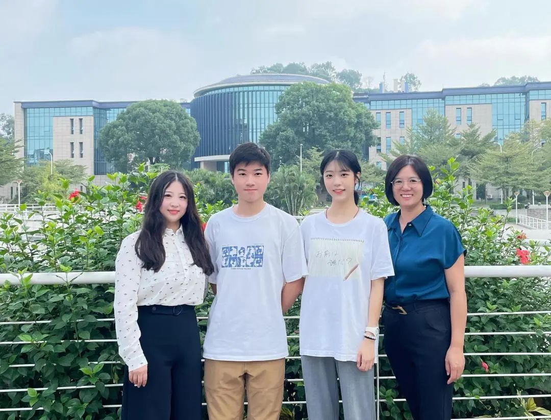 王芬、舒俊婷老师和侯宛言、麦智朗同学合影