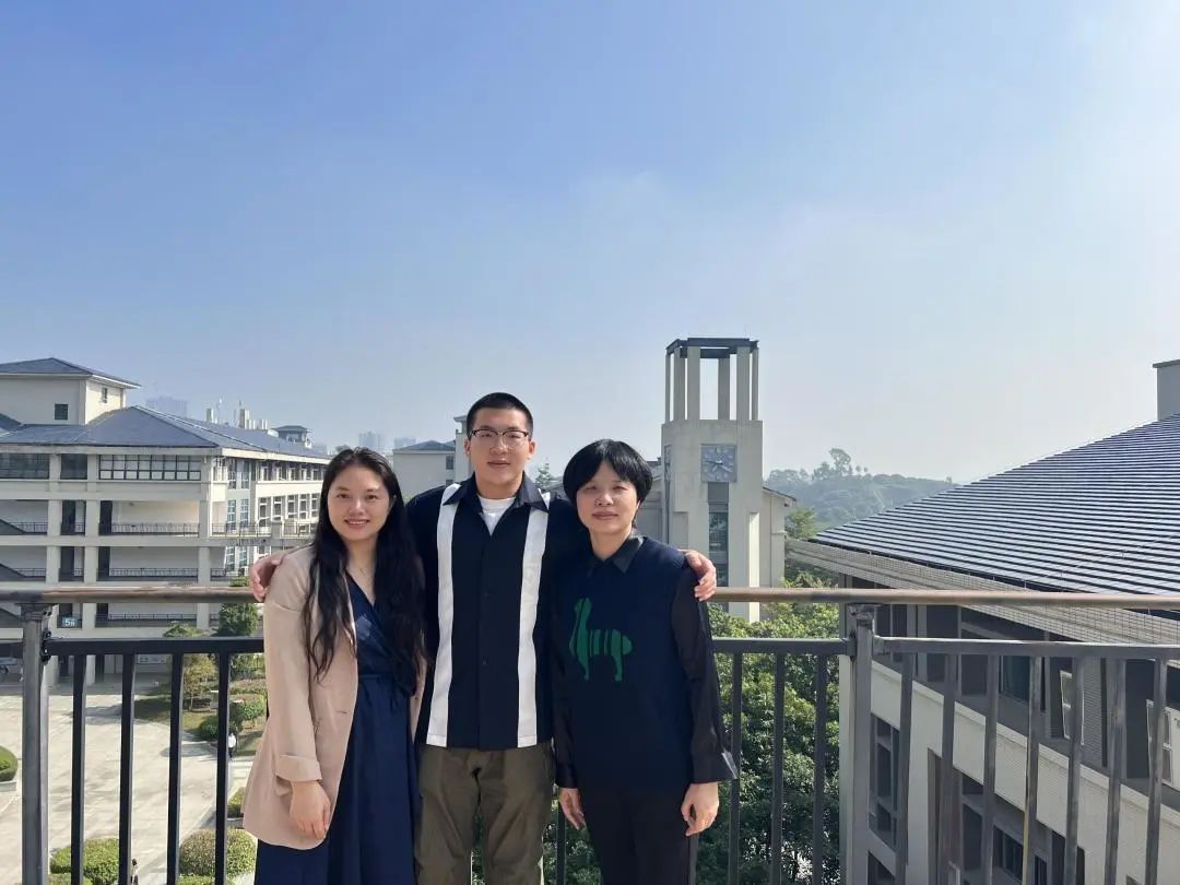 朱俊希、王菁曼老师和获奖的欧骐毓同学合影