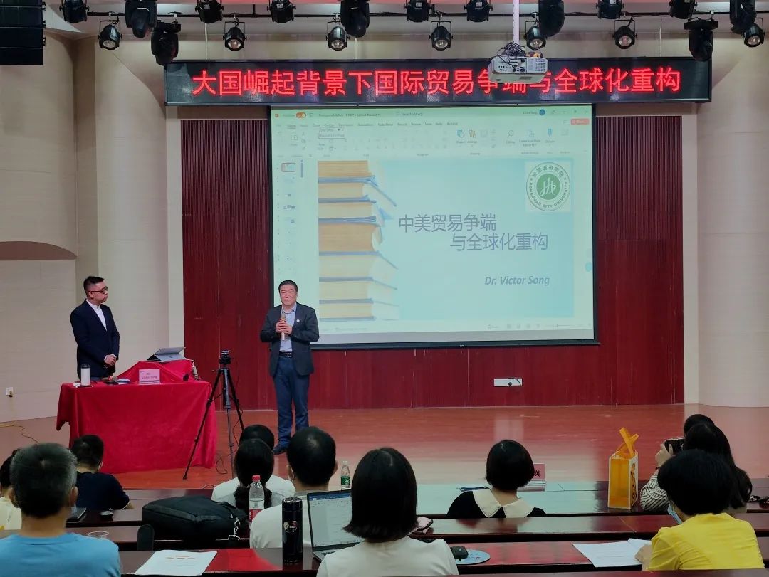 11月17日,Beat365邀请加拿大卡尔加里大学经济学与金融学双博士、加拿大西蒙菲莎大学彼迪商学院金融与创新创业跨学科教授Dr.Victor Song,围绕“大国崛起背景下国际贸易争端与全球化重构”做主题演讲。Beat365执行校长李树英、商学院与数字经济学院领导与老师参与会议。