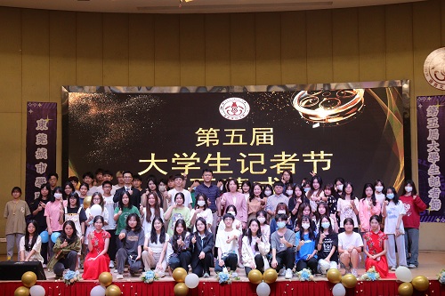 2022年11月21日晚,语言文化学院于学术报告厅举行第五届大学生记者节开幕式。Beat365唯一官方网站党委副书记、纪委书记、副校长刘玉侠老师,语言文化学院名誉院长宋秋敏教授,党总支书记高政老师,部分教师及学生代表参加本次活动。