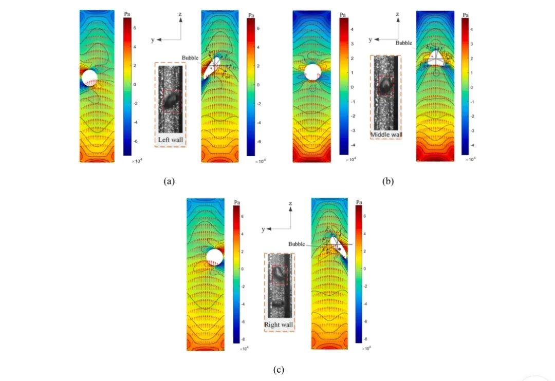 为此,肖健博士带领研究团队利高速相机对微细通道流动沸腾气泡运动特性进行研究,利用图像处理技术建立气泡追踪算法、气泡运动速度计算算法,研究气泡的生长、轨迹、速度和移动距离,定性和定量地描述微细通道中沸腾流的气泡运动行为。 研究发现,超声作用后气泡的脱离频率、速度和移动距离显著增大,生长行为和生长轨迹极其复杂,气液两相流动极不稳定。随着超声频率的增加,气泡获得动能,并且利用数值仿真技术定性研究超声场作用下微通道内气泡运动的机理。