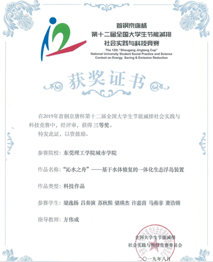 全国大学生节能减排社会实践与科技竞赛二等奖