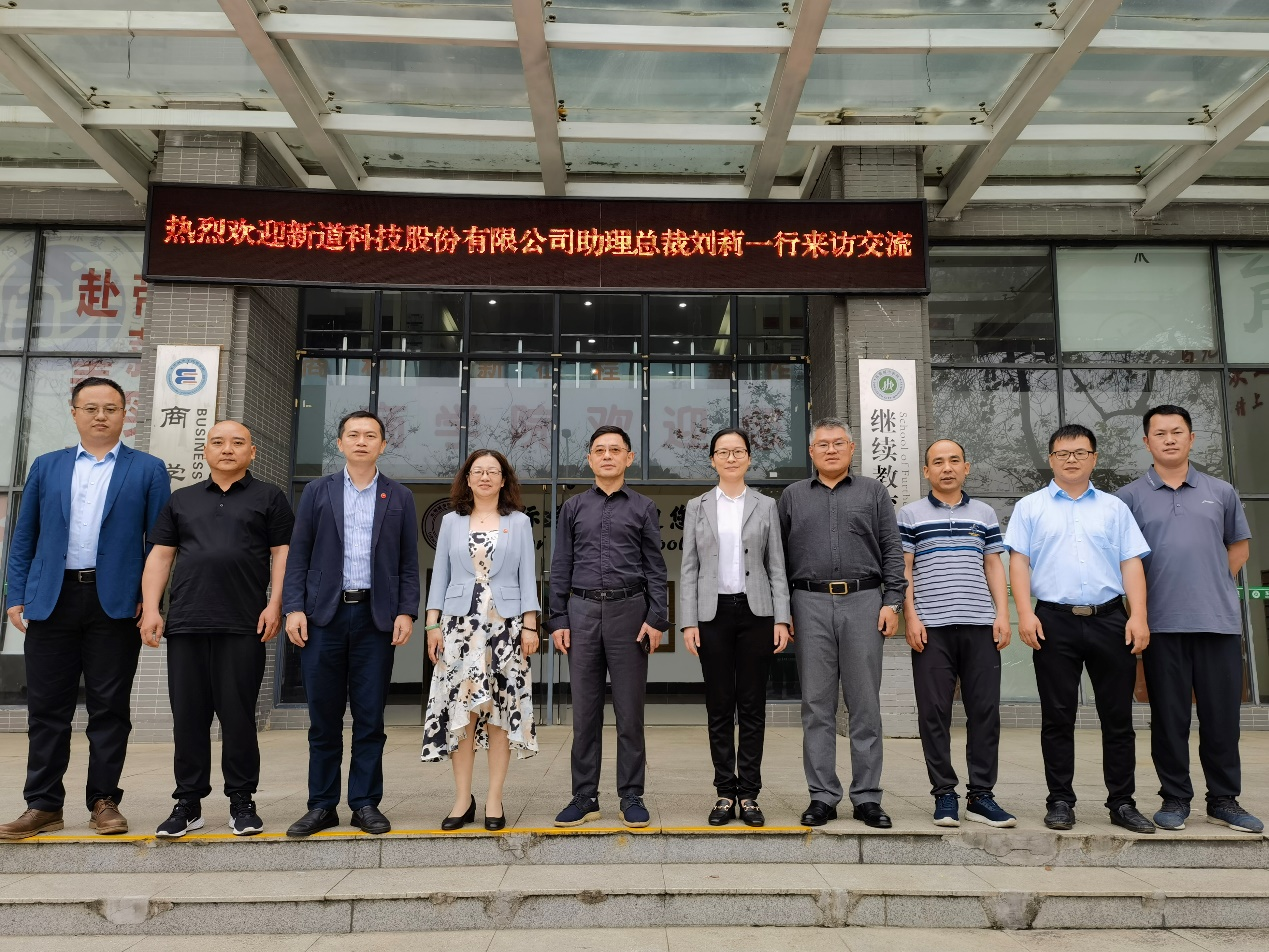 为促进产教结合,创新人才培养模式,4月25日下午,新道科技股份有限公司助理总裁刘莉一行莅临商学院开展合作交流会。商学院院长罗卫国、副院长张洪参加会议。
