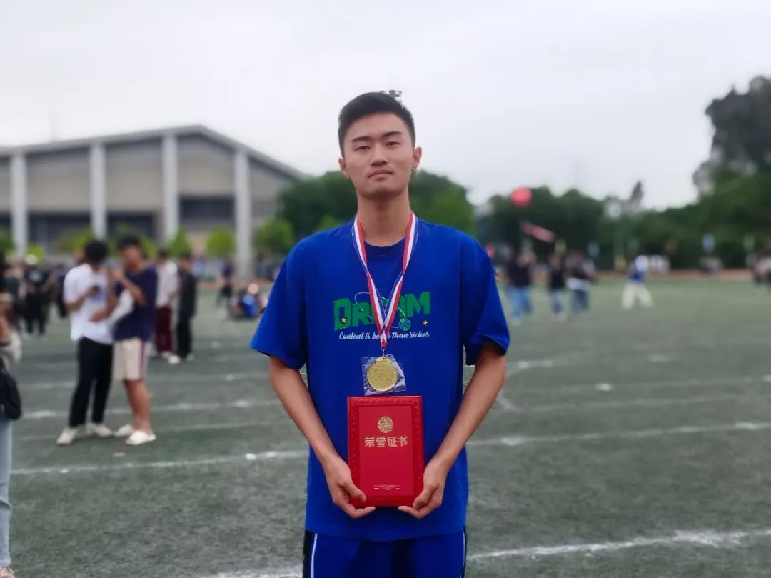 我这次参加的是男子800米项目,很高兴获得了第一名的成绩。我是校队的队员,这是我第一次参加大学校运会,这次的成功离不开我日复一日的训练。我认为平时的训练和比赛时的技巧都是我取得胜利的关键。但是没有破校记录有一点遗憾,我希望下一年我可以继续努力,争取有所突破!